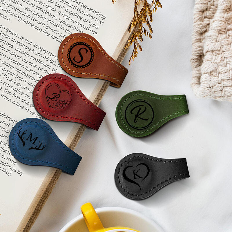 Marcapáginas magnético de cuero personalizado, diseño inicial personalizado, accesorio para libros, regalo para amigos