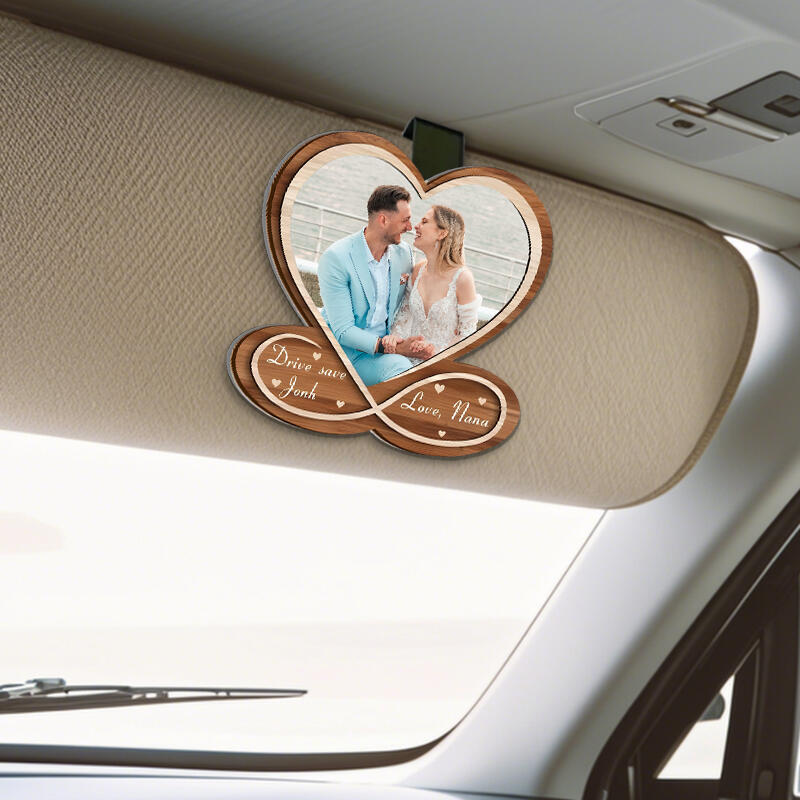 Clip de visera personalizado "Bucle infinito de amor" con foto de pareja, accesorio para San Valentín.