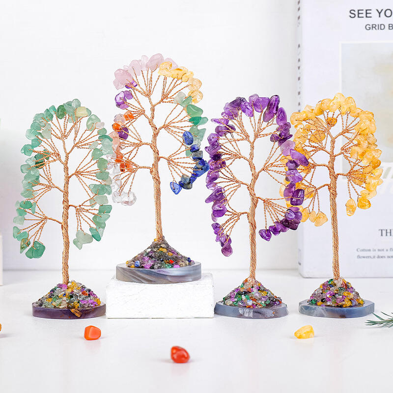 5 estilos de árboles de la fortuna de cristal con base de ágata, árboles de cristal curativos de Reiki, regalos de suerte para amigos