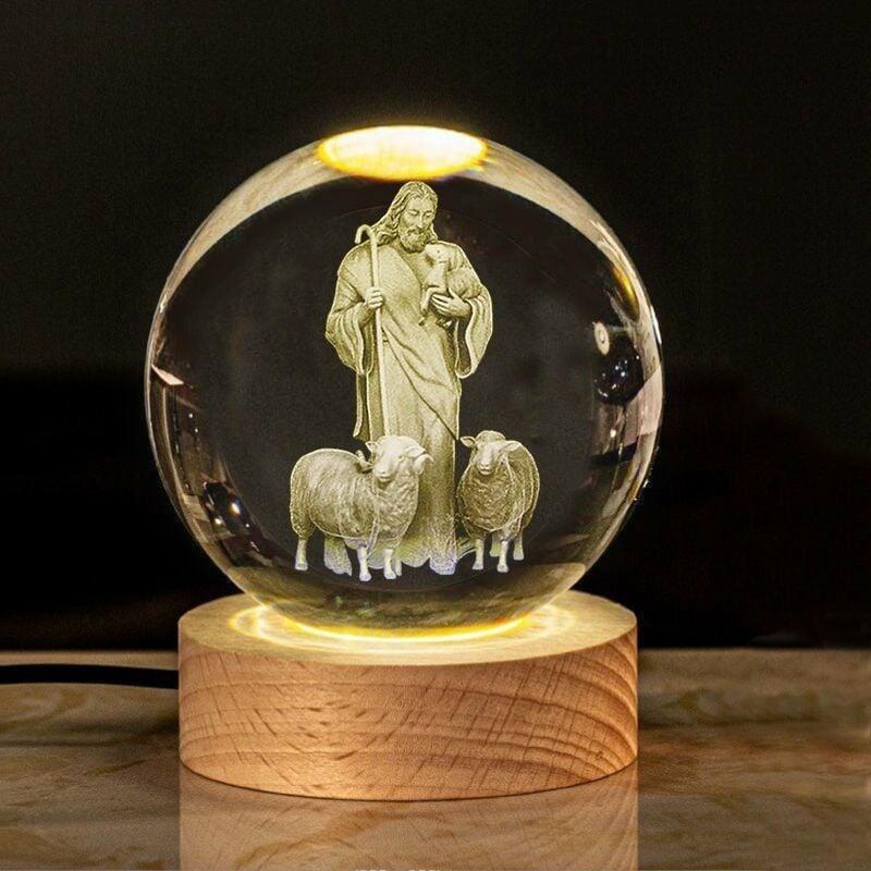 Lámparas cristianas de bola de cristal 3D luces nocturnas conmemorativas con bases para Navidad