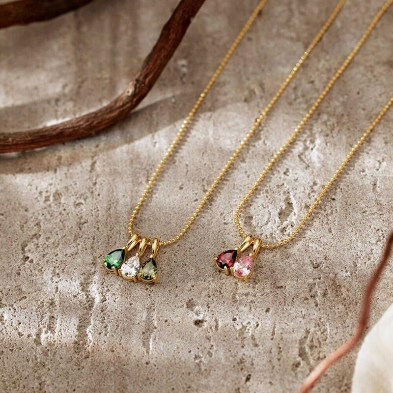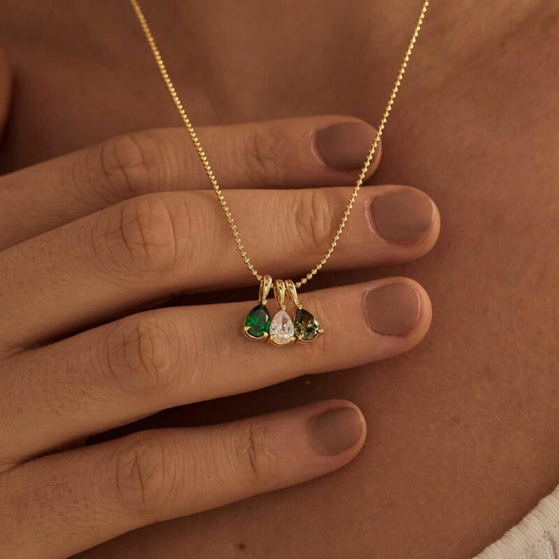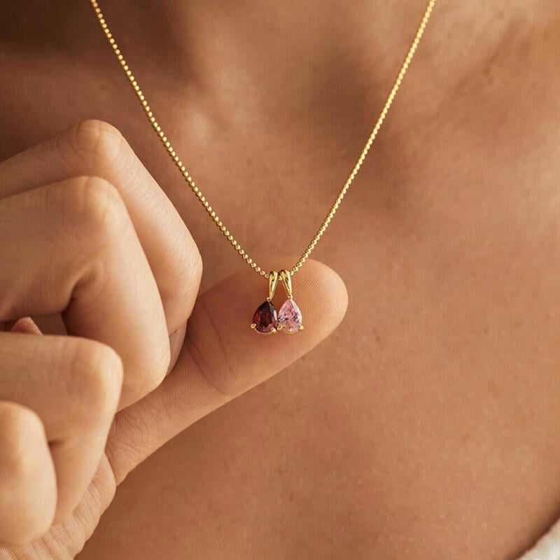Collar con piedra de nacimiento personalizado, collar con forma de gota, regalo de cumpleaños para amigos, pareja y familia para ella