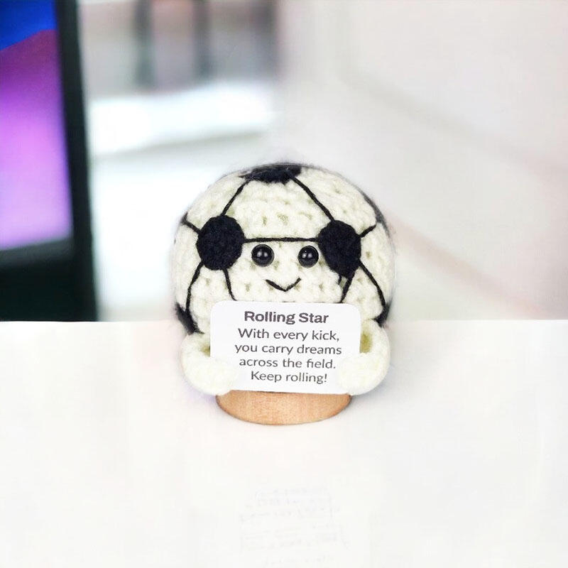 Muñeca de fútbol de crochet hecha a mano, regalo bonito para amigos