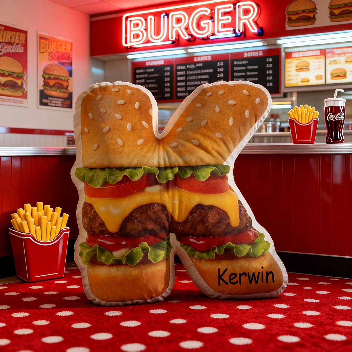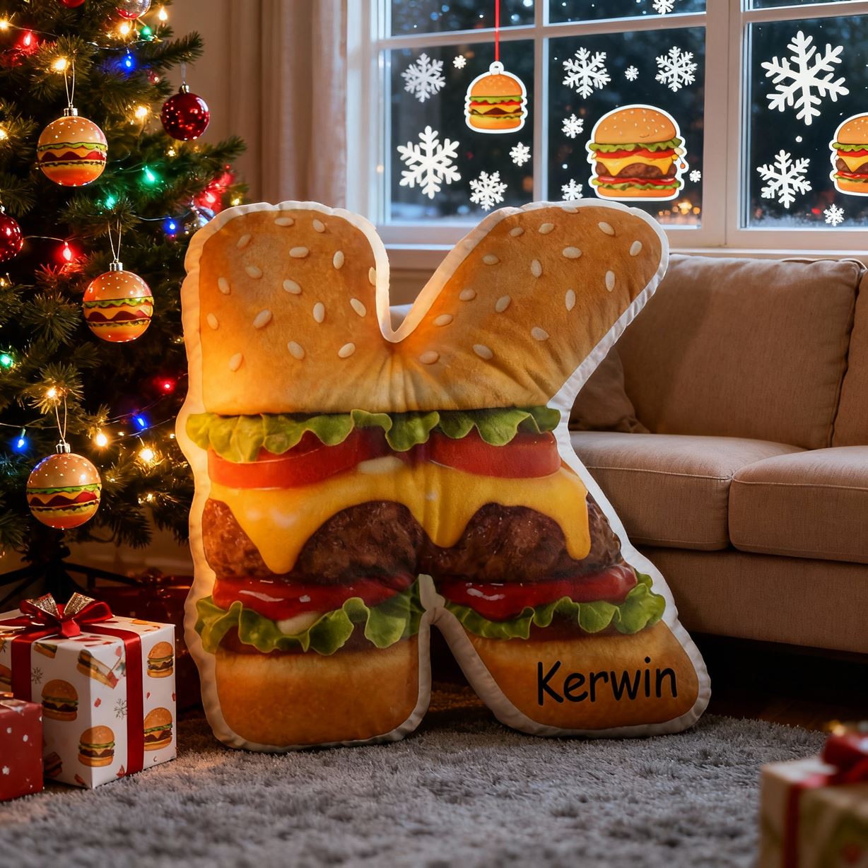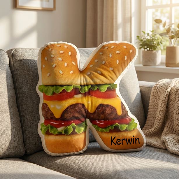 Personalized 3D Letter Pillow Hamburger Print Pillow Funny Fabric Cushion for Kids