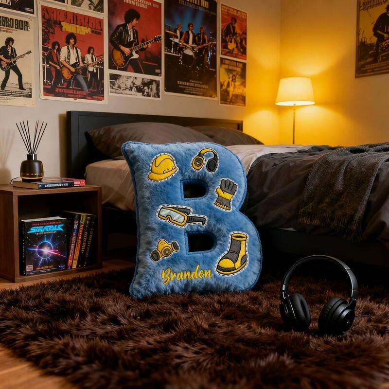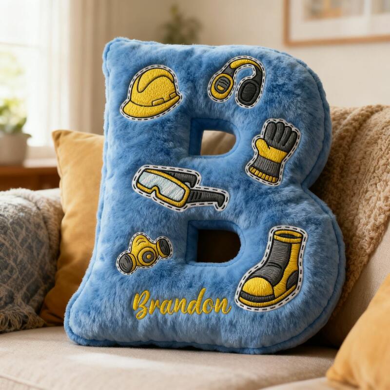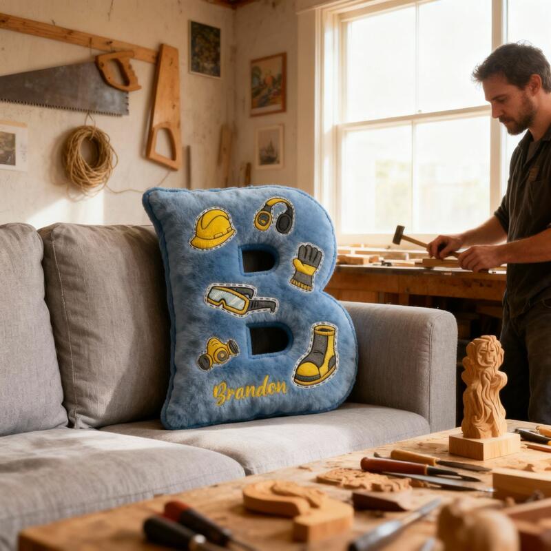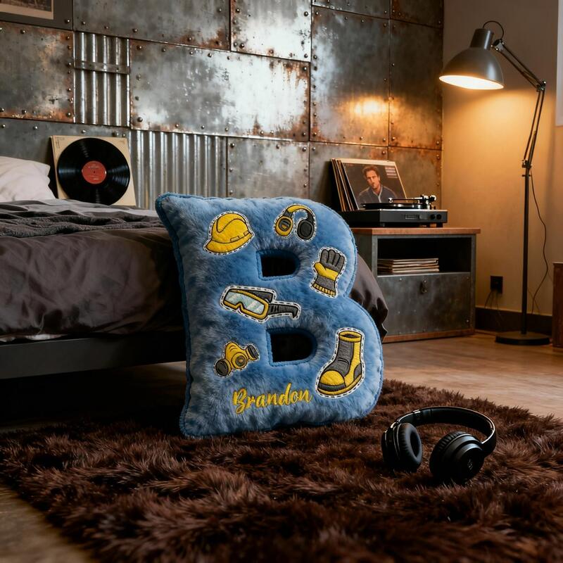 Almohada con letras 3D personalizadas, símbolo de herramientas, regalo de cumpleaños para niños