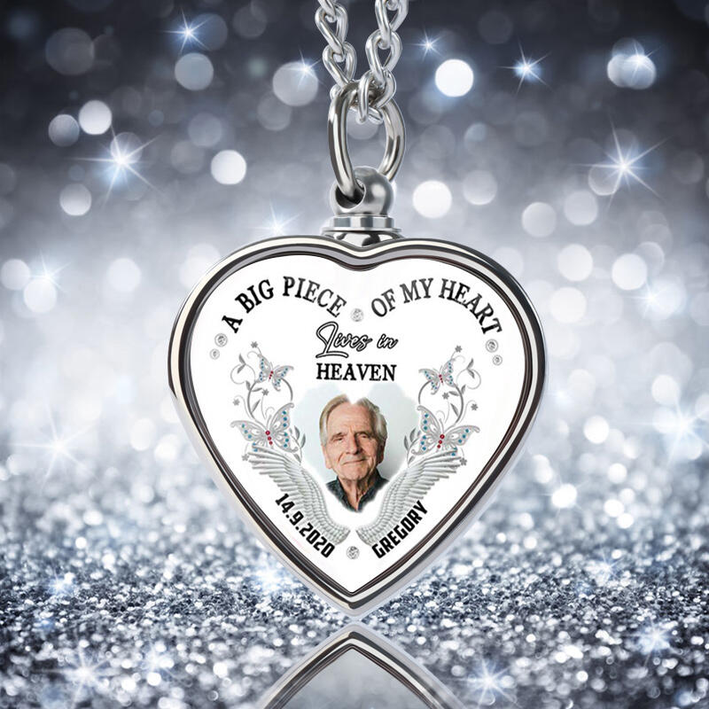 Gargantilla de urna funeraria personalizado de foto en forma de corazón de mariposa hermosa