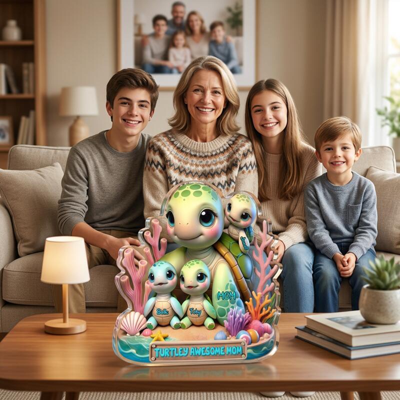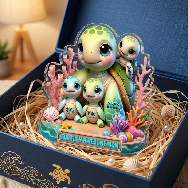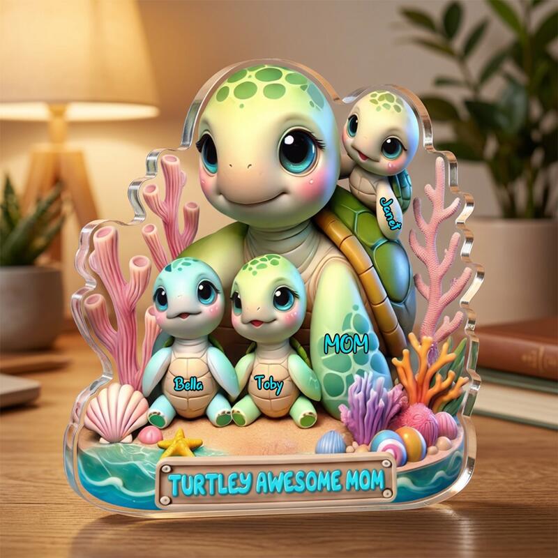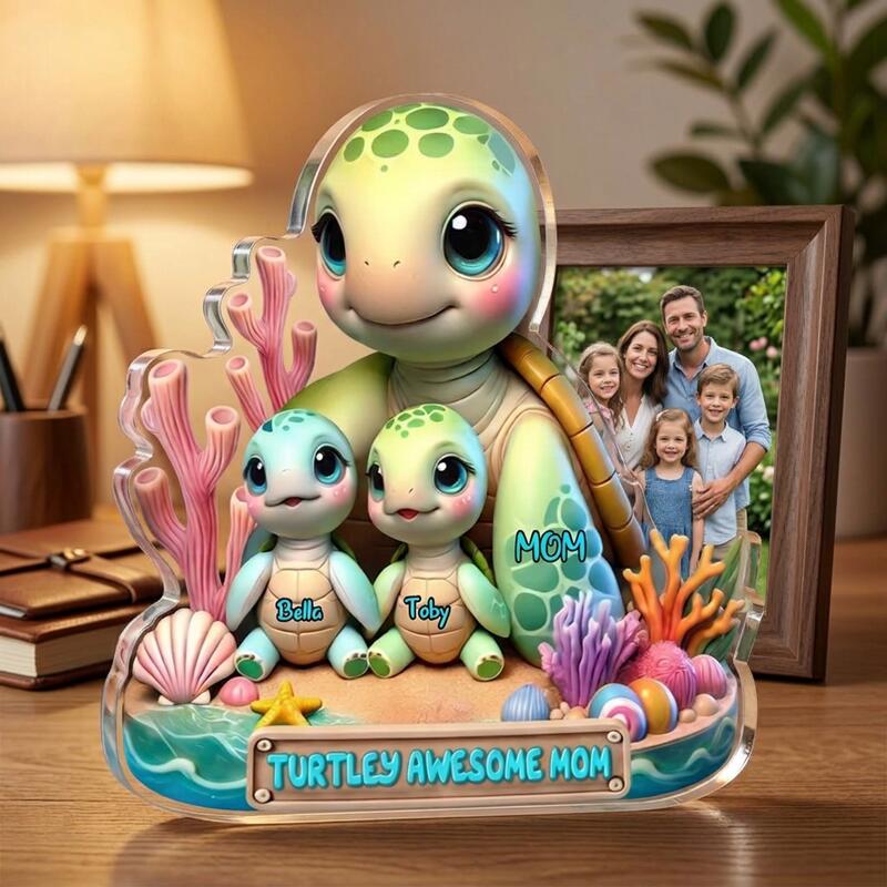 Placa de bloque acrílico personalizada nombres personalizados de mamá y tortuga bebé regalo perfecto para querida mamá