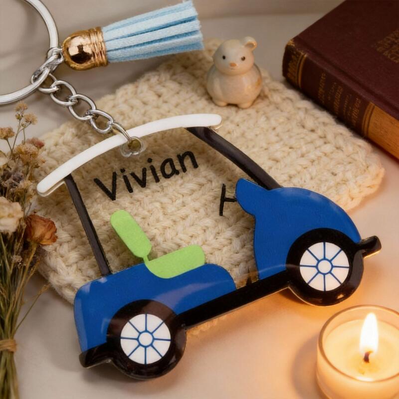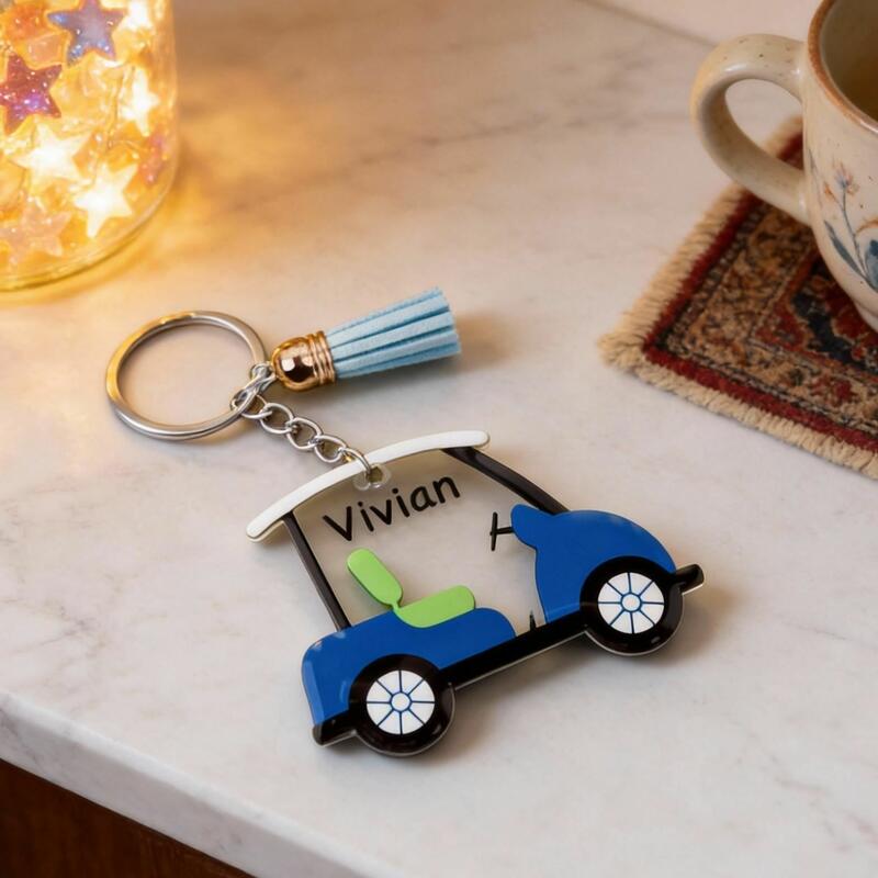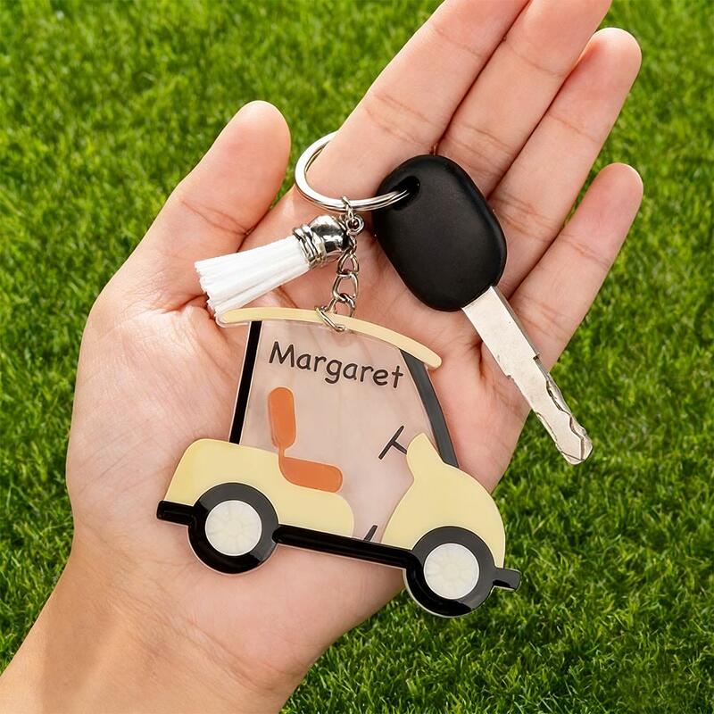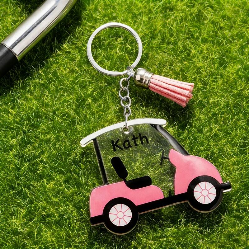 Llavero personalizado de carrito de golf acrílico con mochila con borla Regalo para amantes del golf