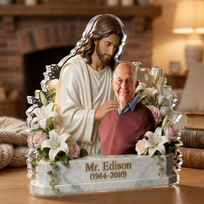 Soporte conmemorativo de acrílico personalizado tributo a Jesús y foto regalo de duelo para la familia