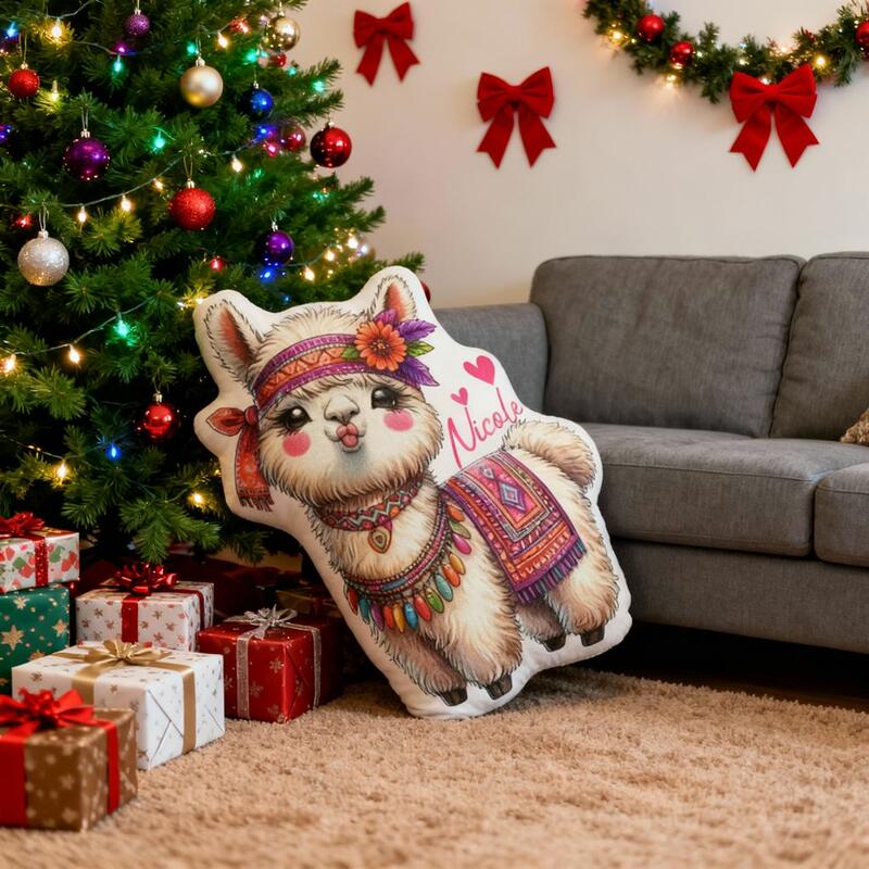 Almohada de alpaca personalizada, exquisita y divertida impresión animal, adorno de tela para Navidad