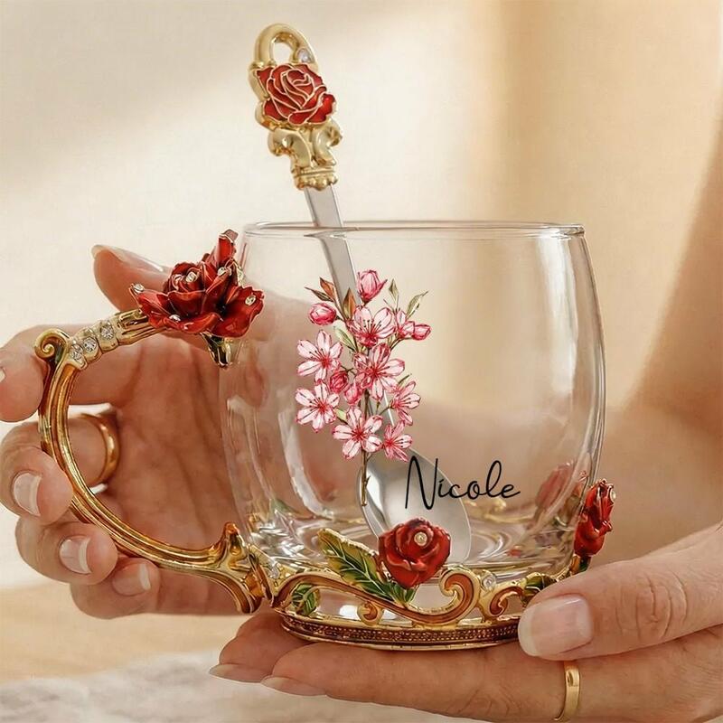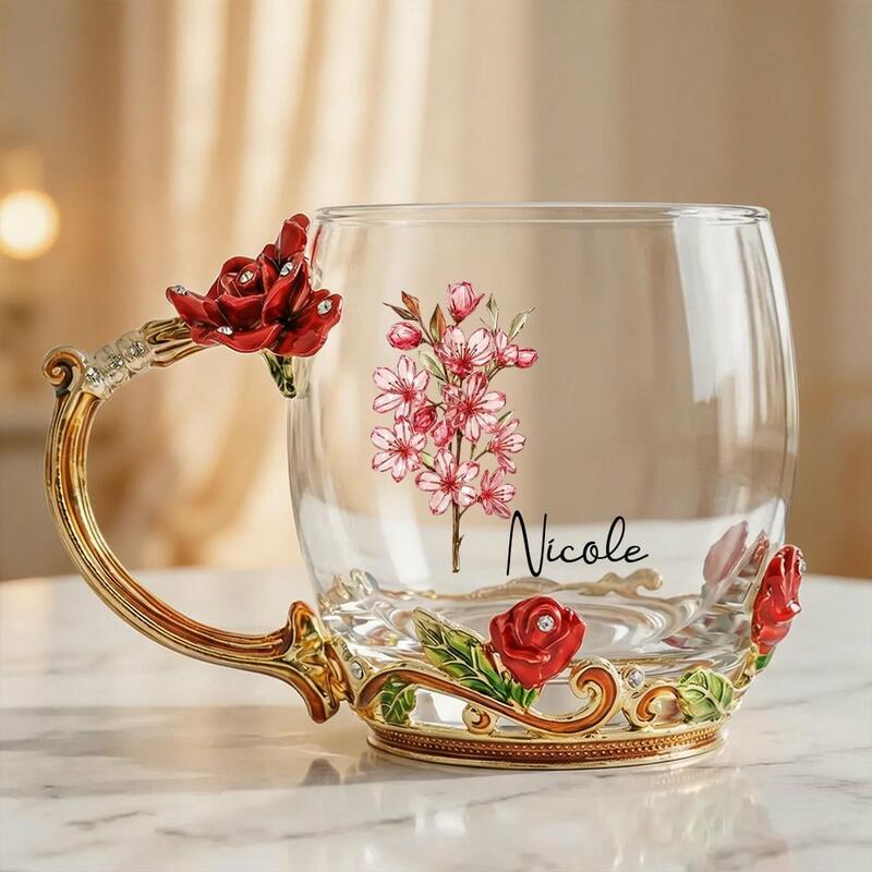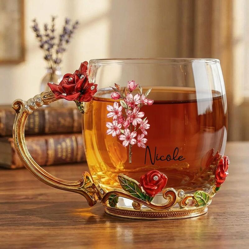 Taza de té personalizada con esmalte de flor de nacimiento con nombre personalizado maravilloso regalo para querida mamá