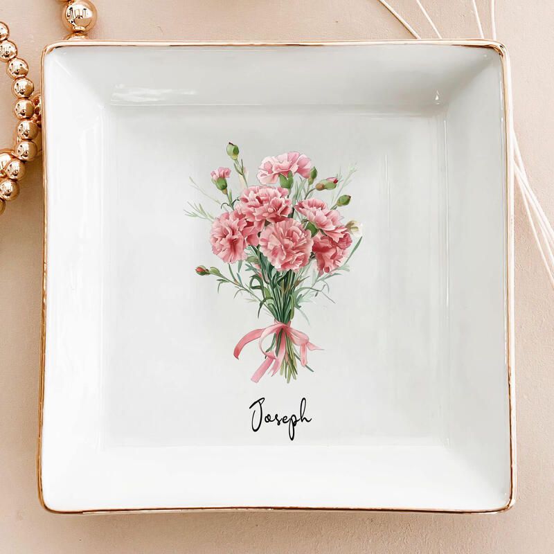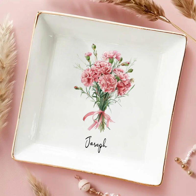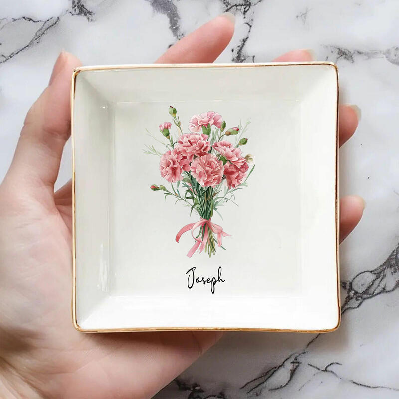 Plato para anillos con diseño de flor de nacimiento personalizado y nombre personalizado, regalo creativo para cumpleaños