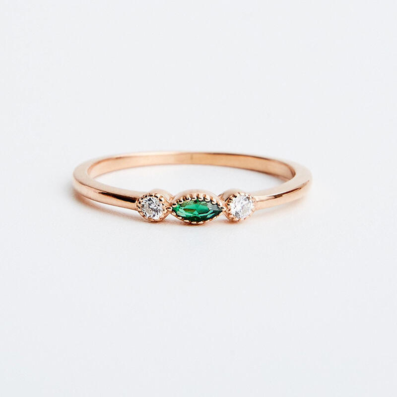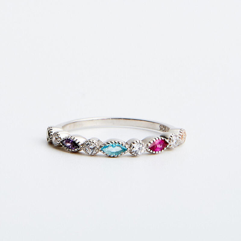 Anillo de piedra de nacimiento personalizado con diamante. Maravilloso regalo para mamá.