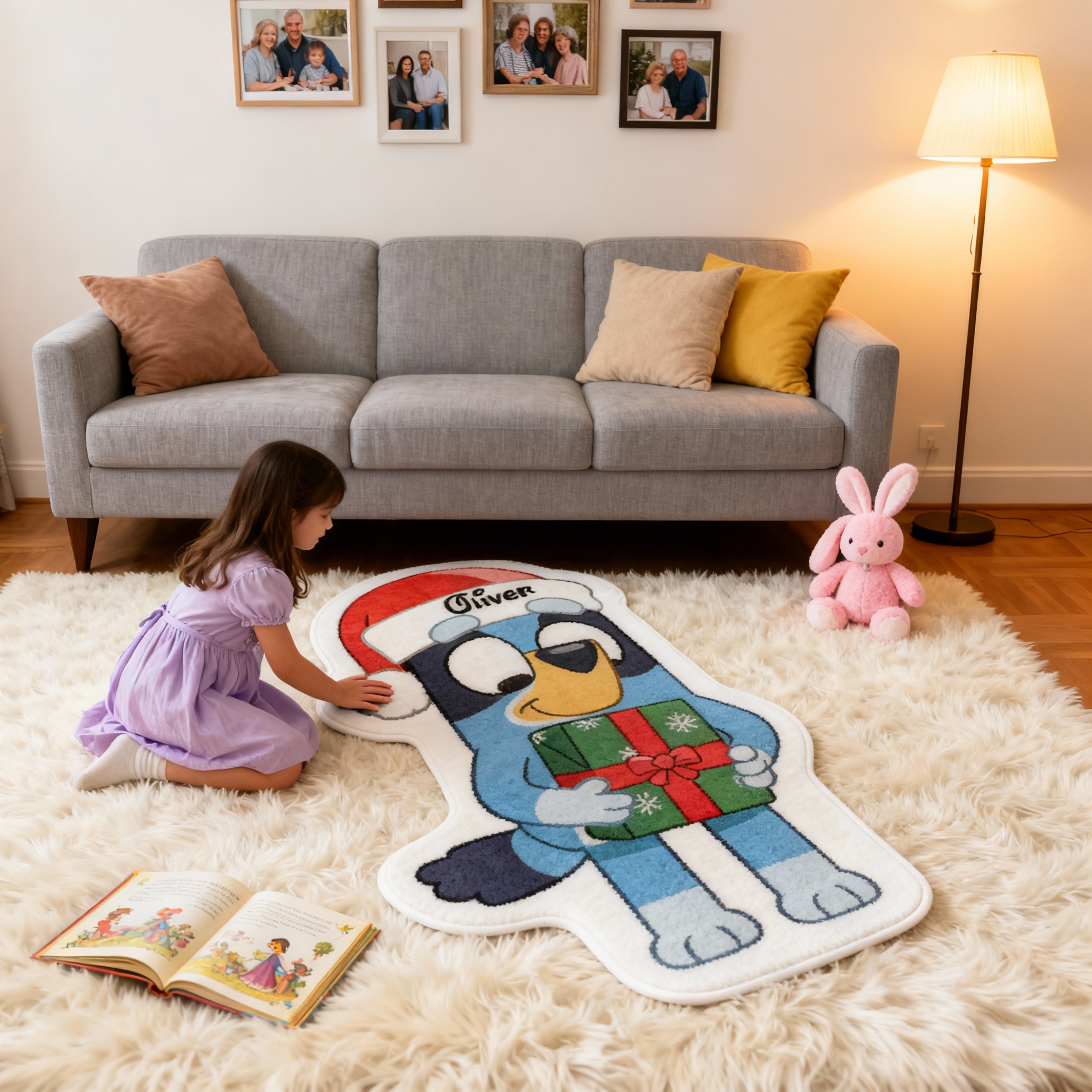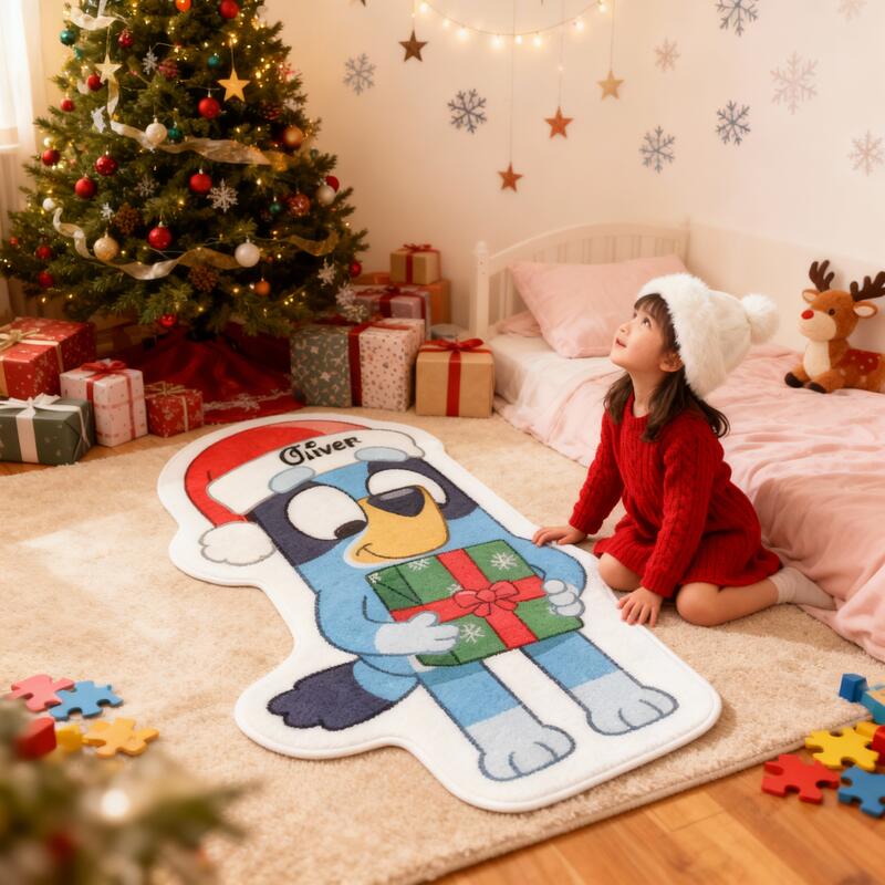 Tapete de juego personalizado de cachorro de dibujos animados con personalización de nombre, regalo de Navidad para niños