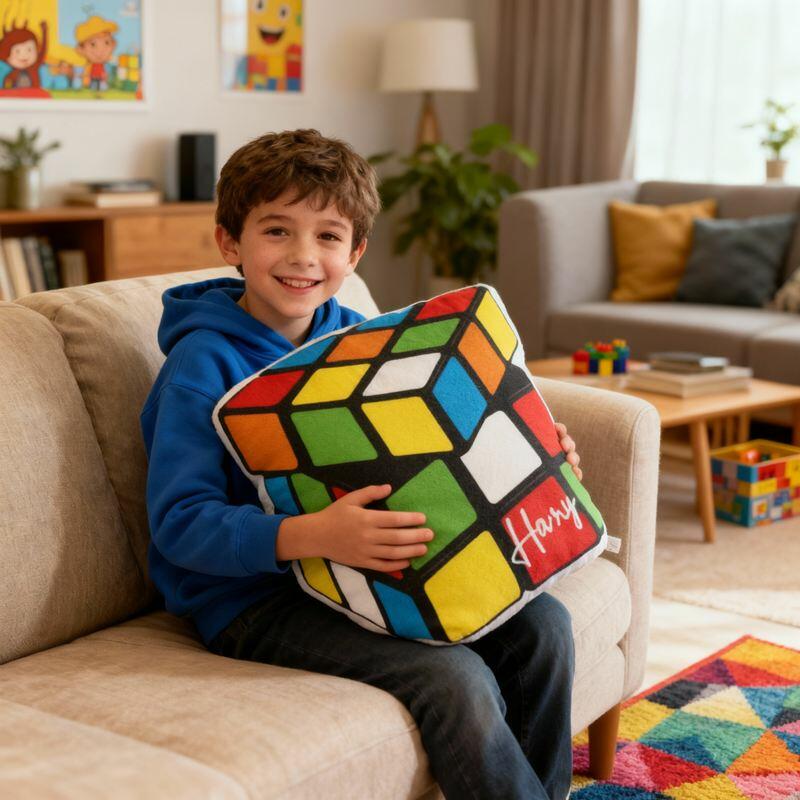 Almohada personalizada con forma de cubo de Rubik, diseño inspirado en dibujos animados. Regalo creativo para niños.