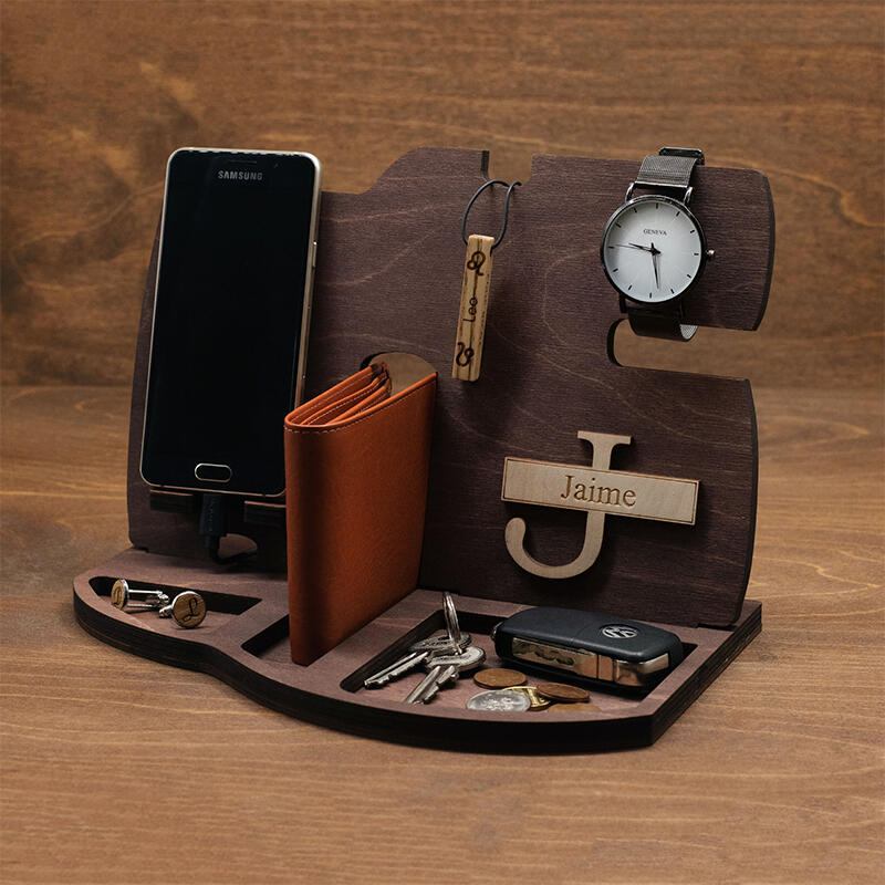 Organizador de escritorio personalizado, base para teléfono, accesorio, regalo perfecto para él, pareja y papá