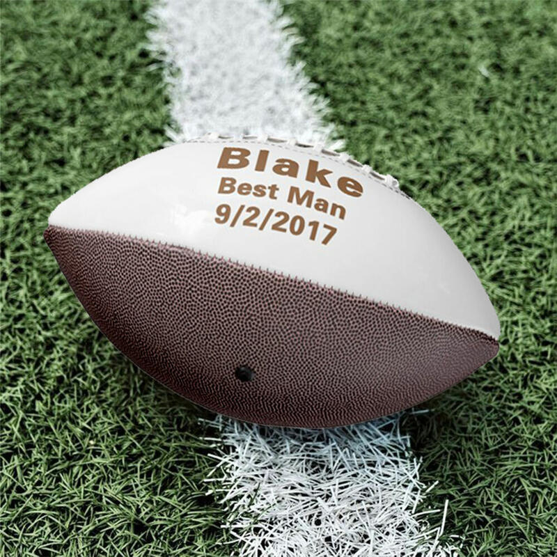 Balón de rugby personalizado con nombre y texto como regalo para el padrino de la boda