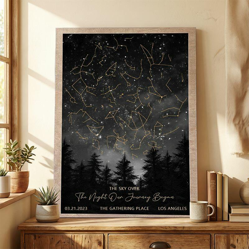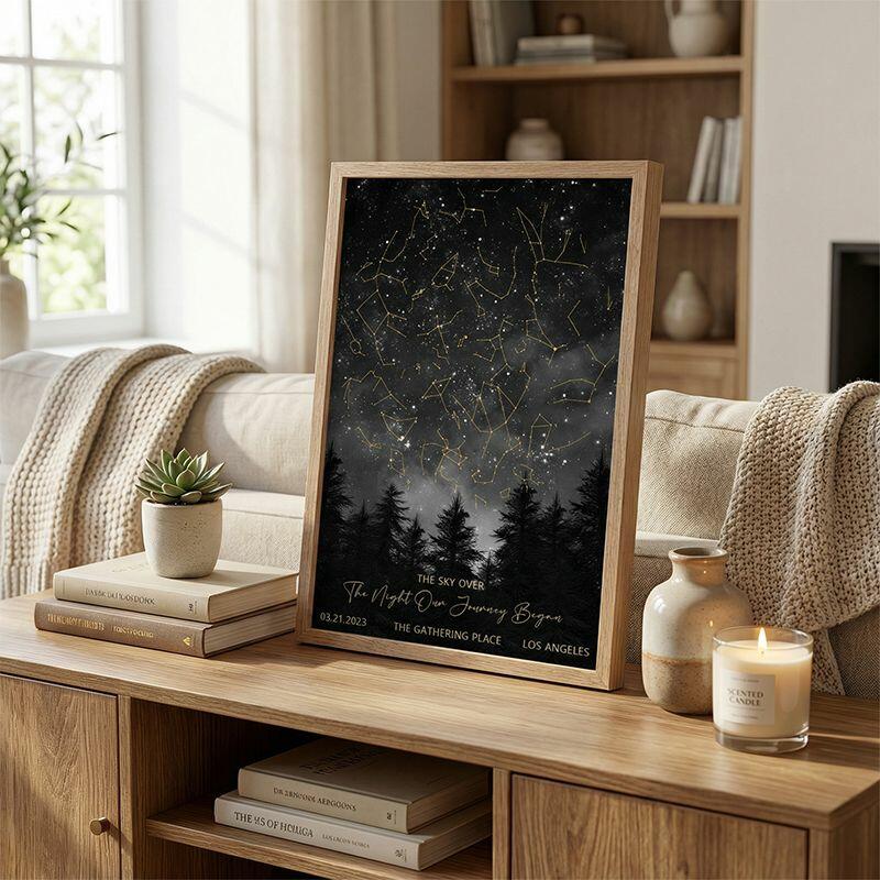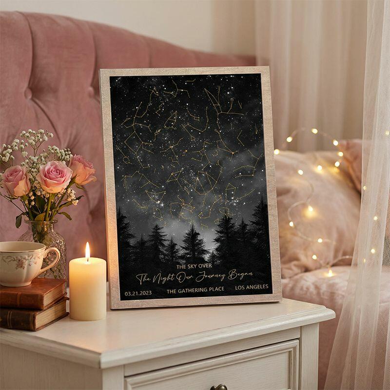 Marco personalizado Mapa Estelar Personalizado de La Fecha y Ubicación Especiales Regalo Único de Aniversario para Parejas