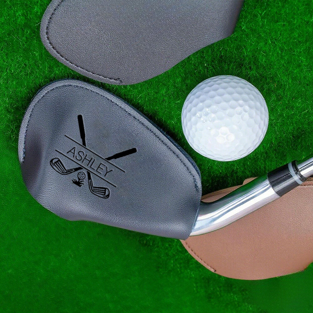 Fundas de cabeza de hierro de golf personalizadas con nombre grabado, impermeables, de cuero PU, para golfistas