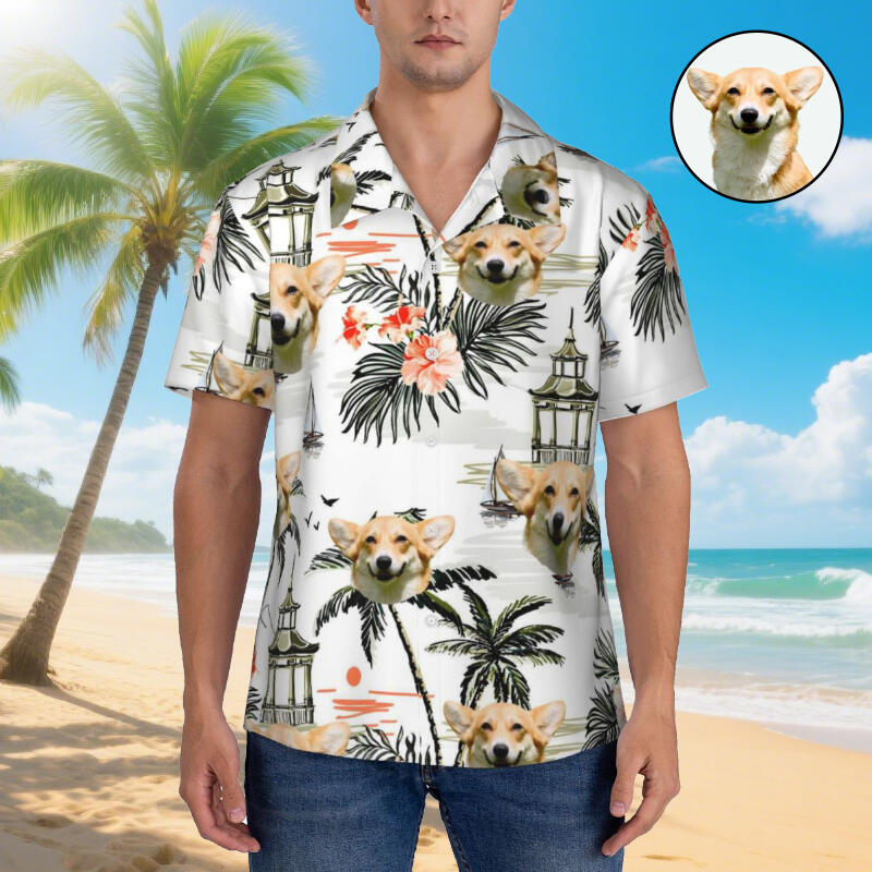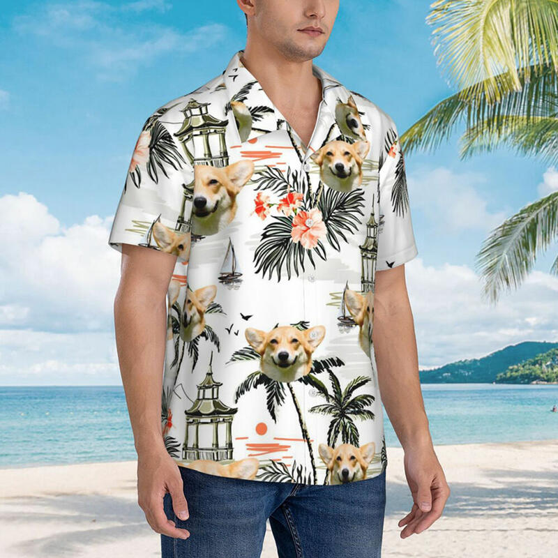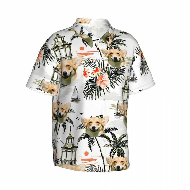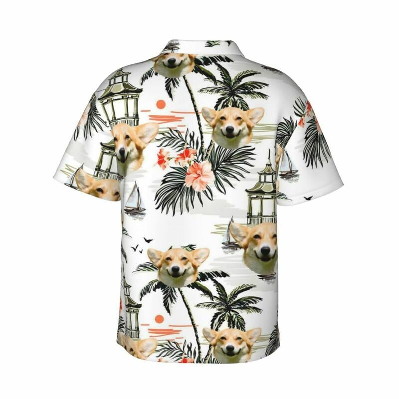 Camisa hawaiana personalizada con estampado de plantas tropicales. Agregue una foto de su mascota. Regalo para dueños de mascotas.