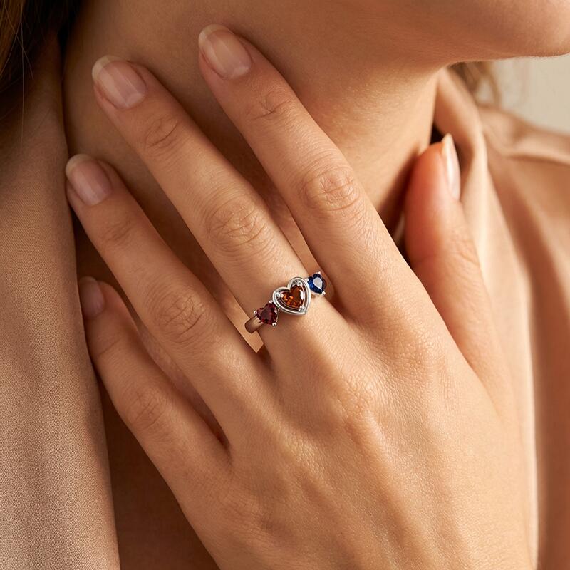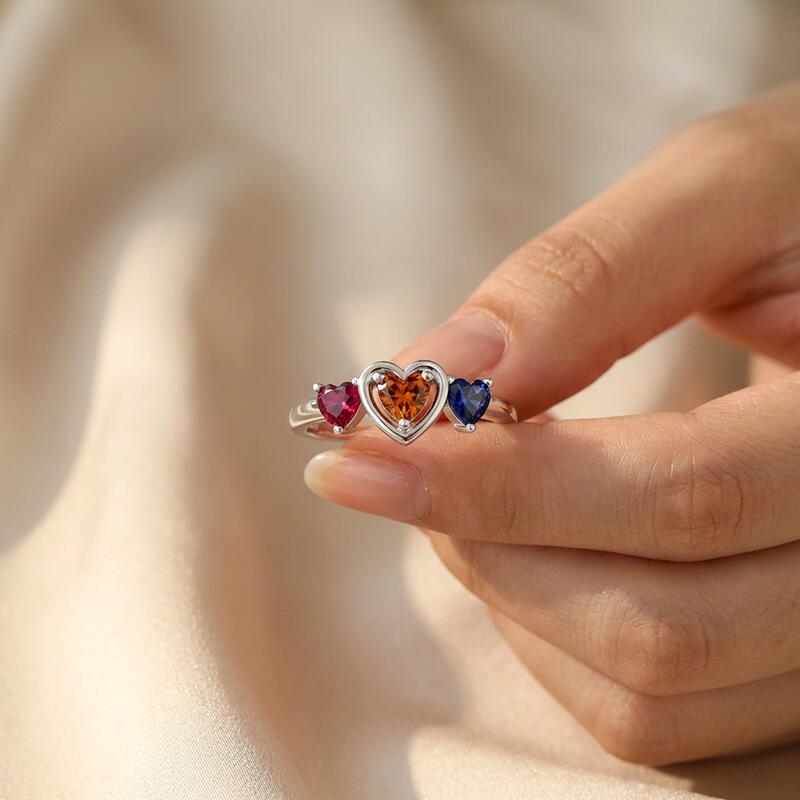 Anillo personalizado de piedra de nacimiento en forma de corazón regalo creativo para la familia