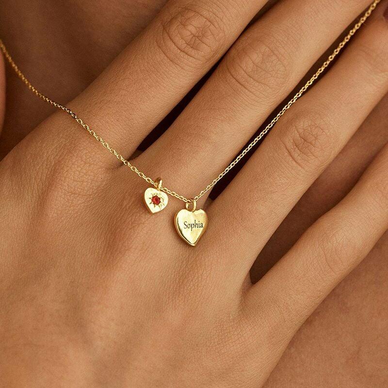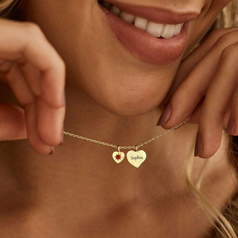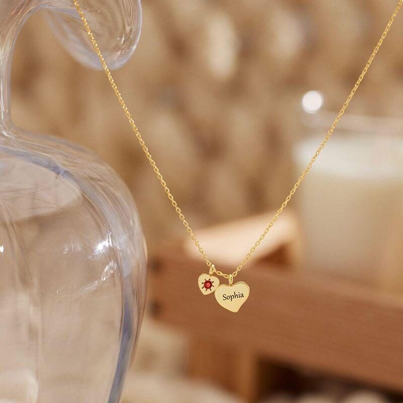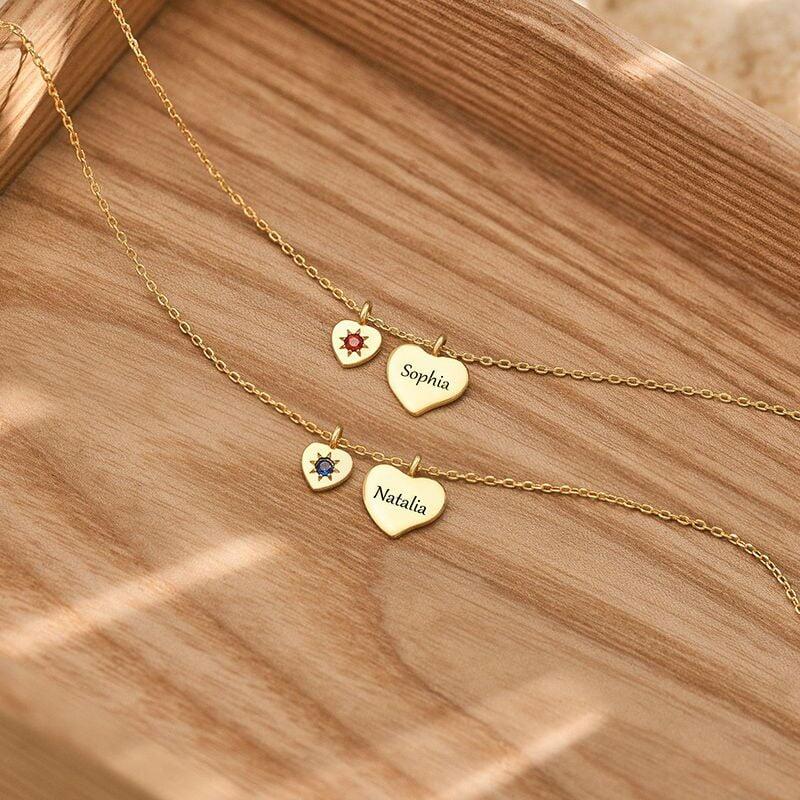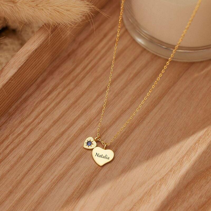 Collar personalizado con etiqueta de nombre en forma de corazón con piedra natal regalo romántico para ella