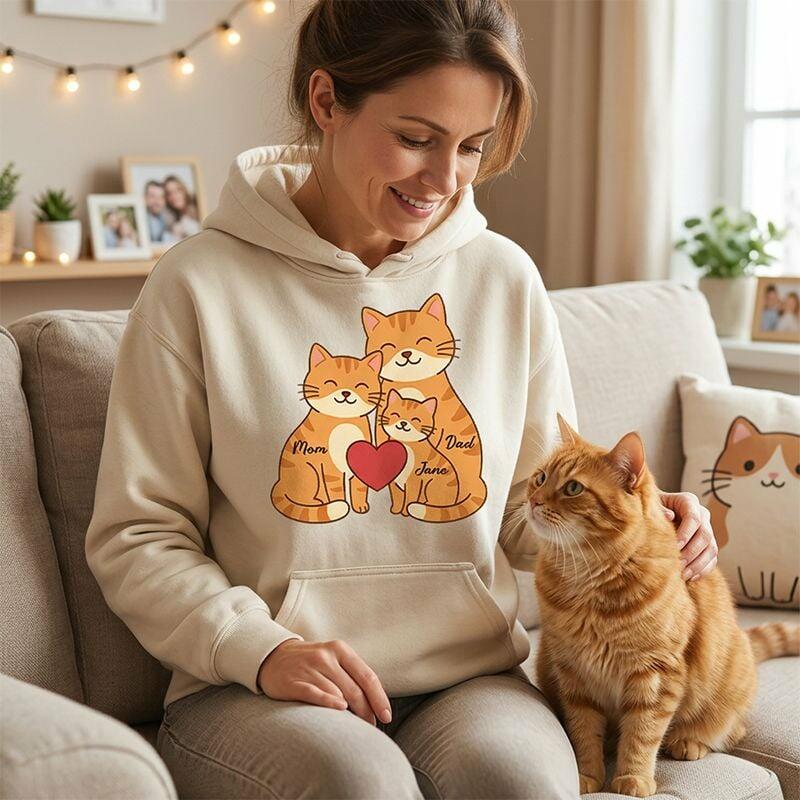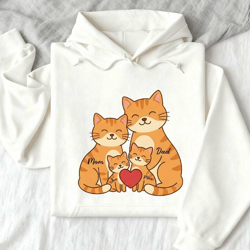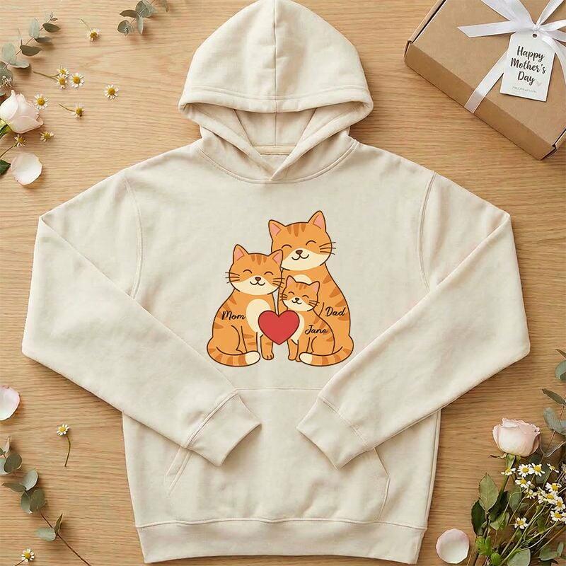 Sudadera con capucha personalizada con nombres de familia personalizados diseño con patrón de gatos regalo adorable para el Día de la Madre
