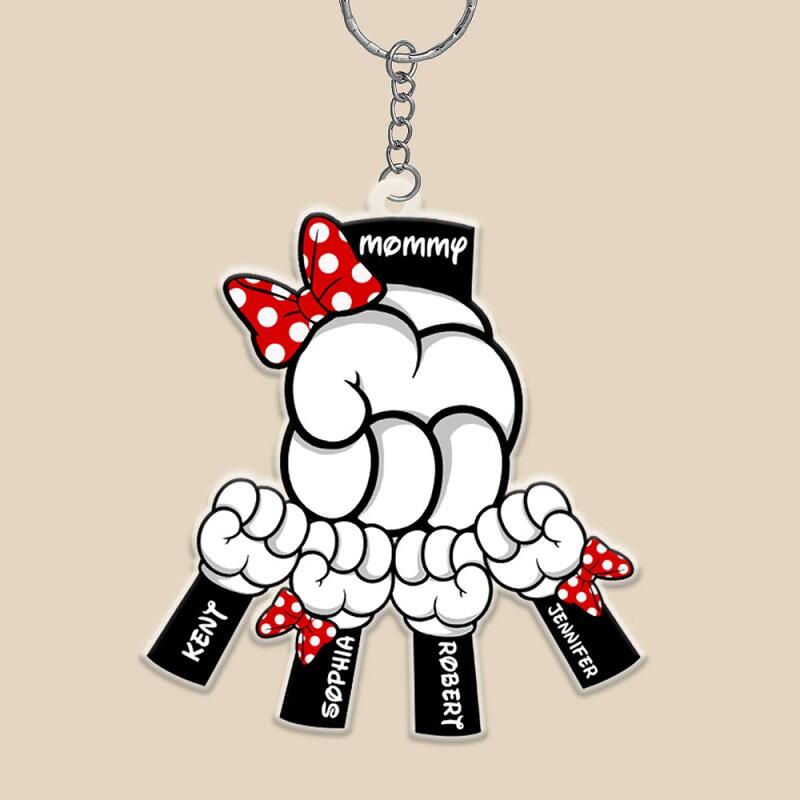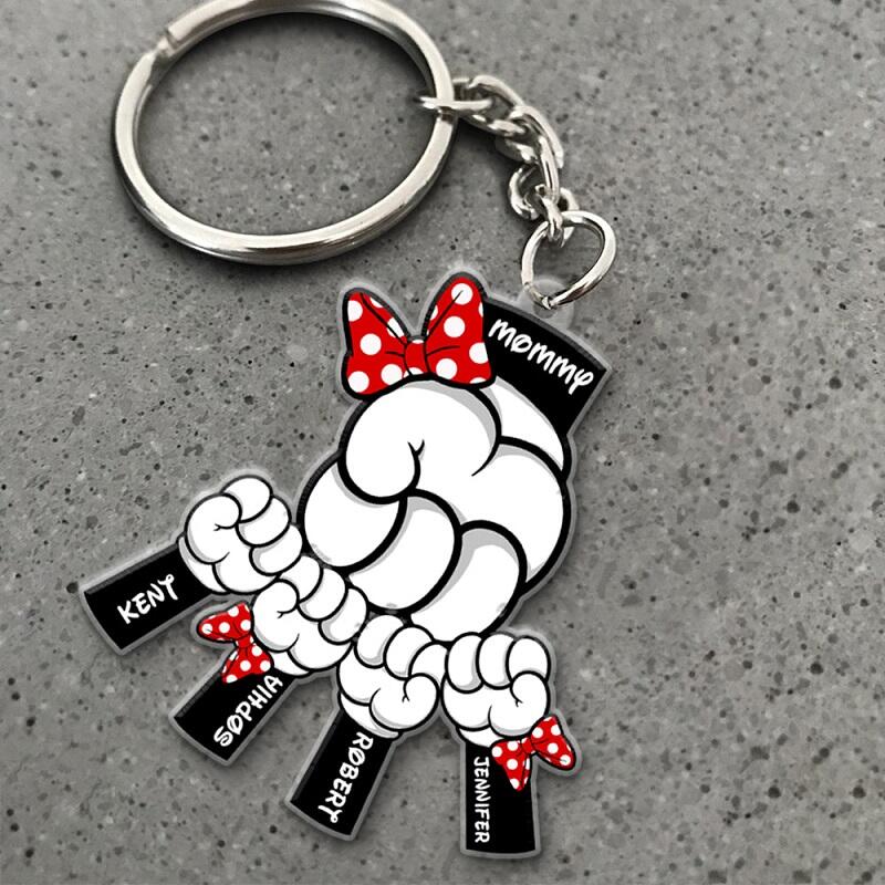 Llavero personalizado con bonito patrón de golpe de puño diseño de nombres personalizados regalo para la familia
