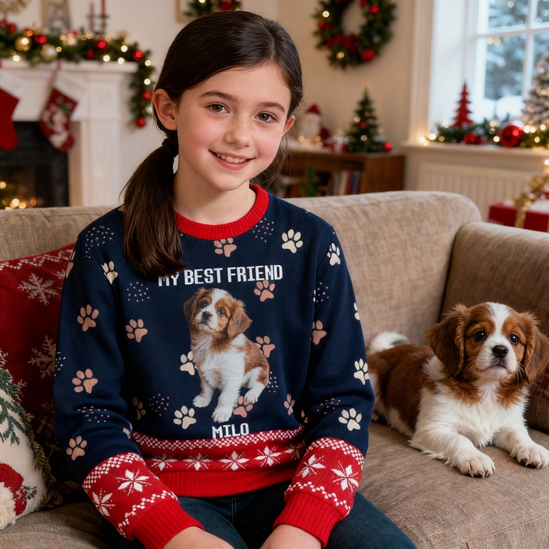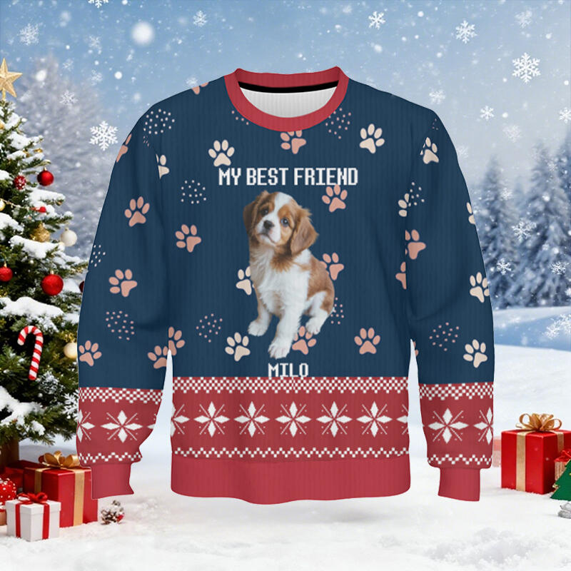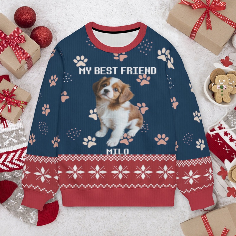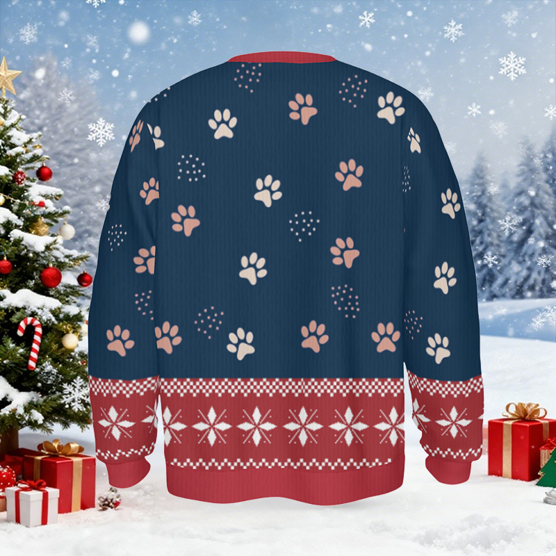 Suéter feo personalizado para niños, unisex, con foto de mascota personalizada y diseño de huellas, bonito regalo de Navidad para amantes de las mascotas.
