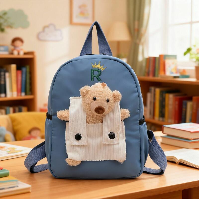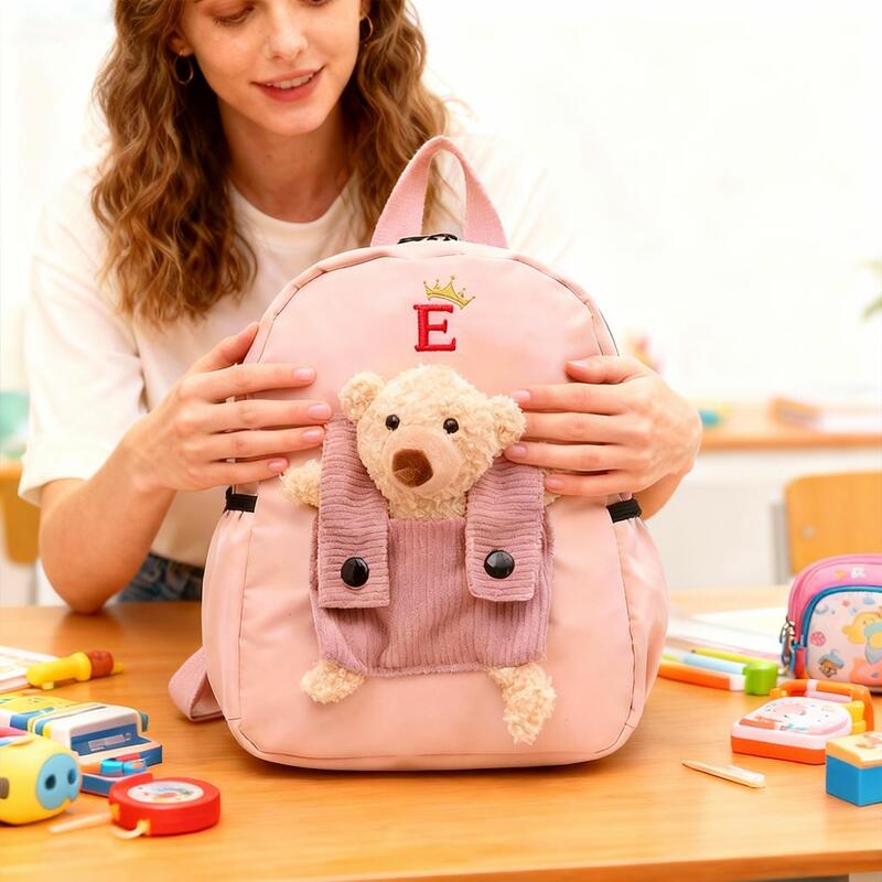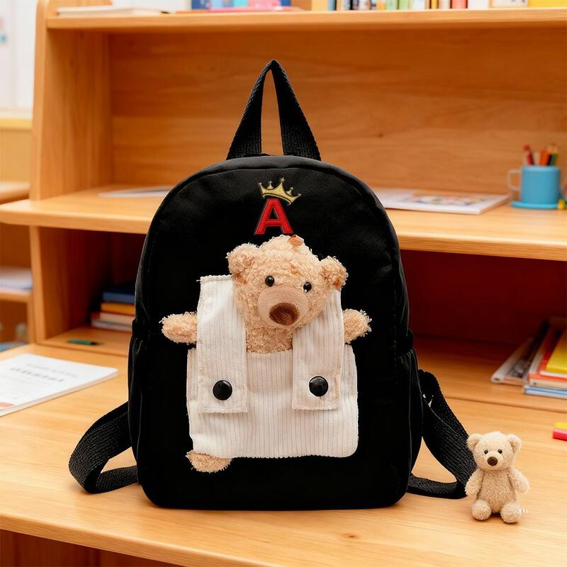 Mochila con letras personalizadas y corona bordada, bonita mochila de oso, regalo de cumpleaños para niños