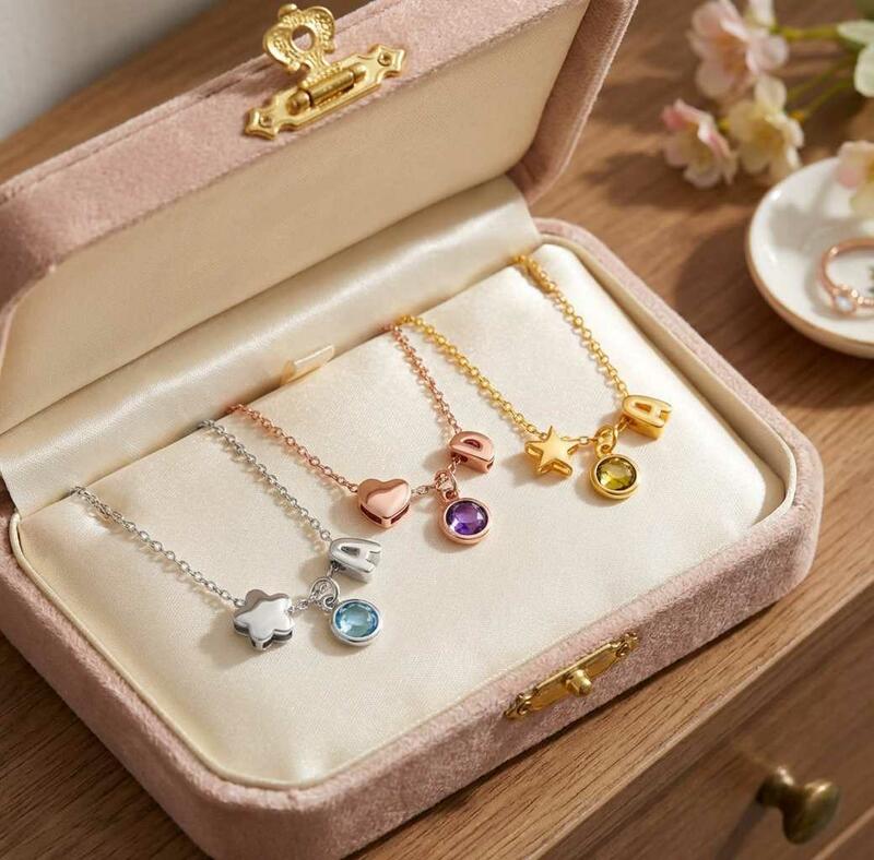 Collar con letras personalizado con piedra natal un bonito regalo para niñas