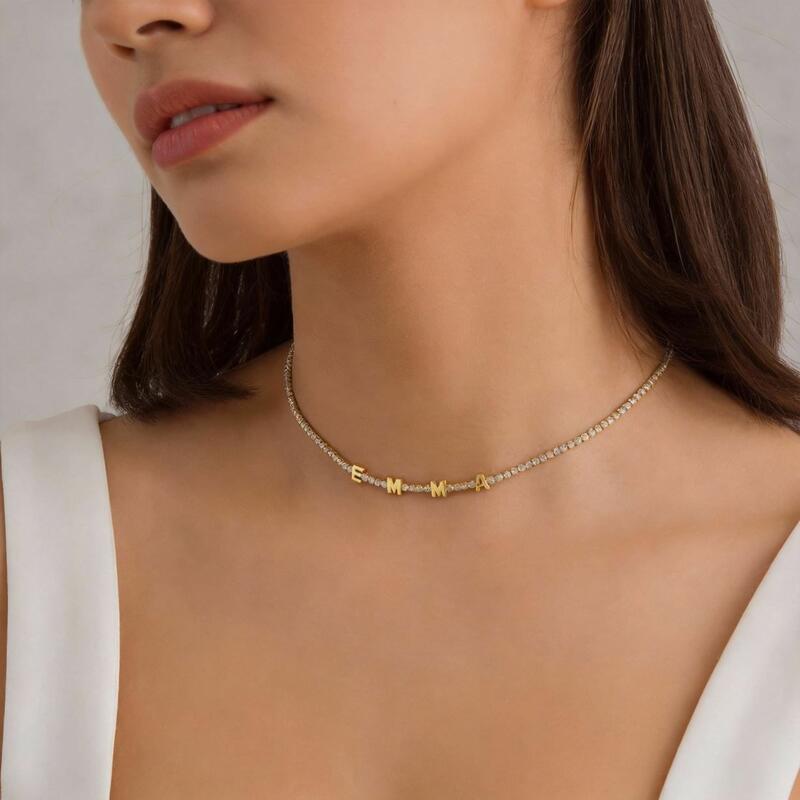 Collar de letras personalizado con diamantes, un regalo exquisito para tu esposa.