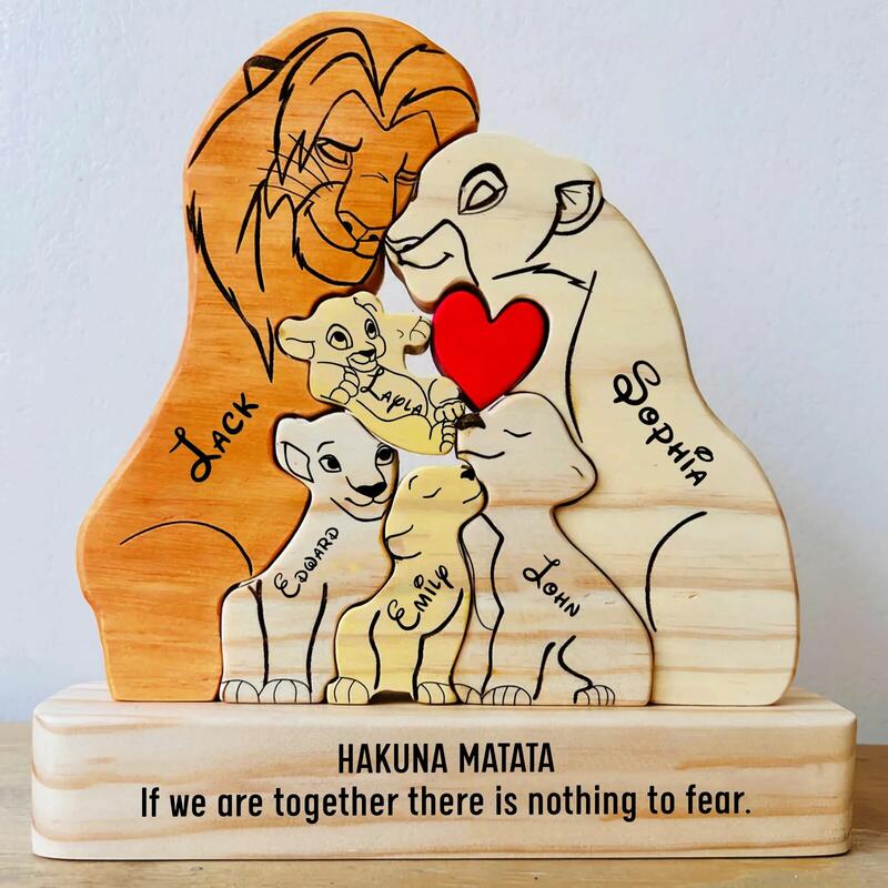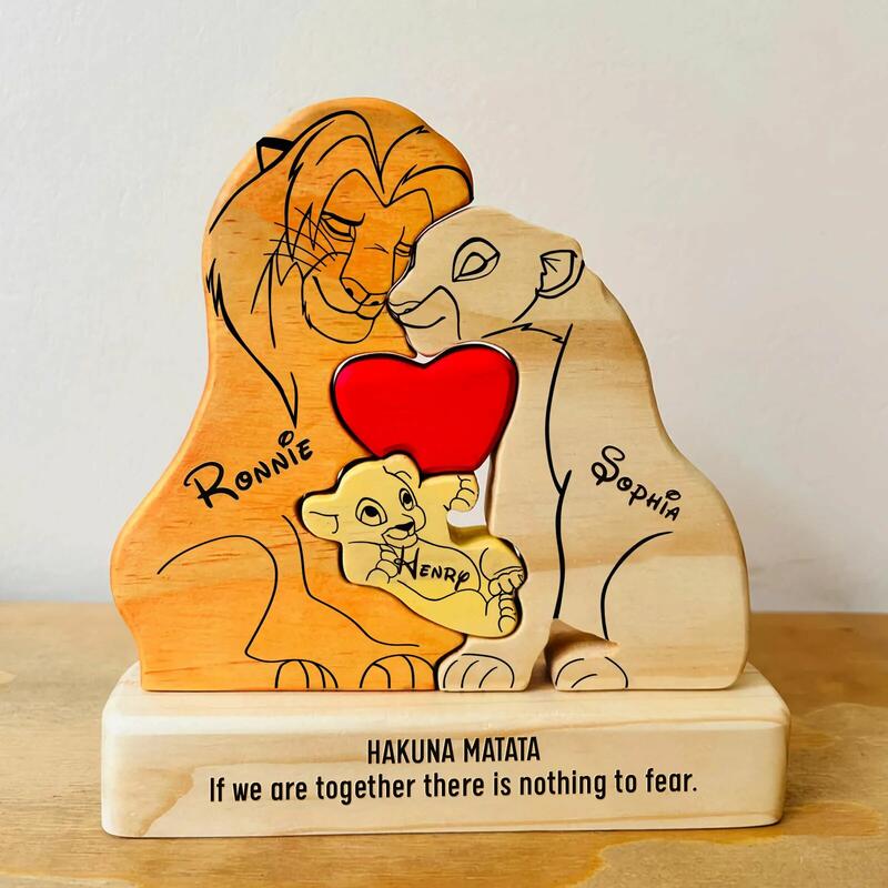 Rompecabezas de madera personalizado de la familia del león Regalo conmemorativo para la familia