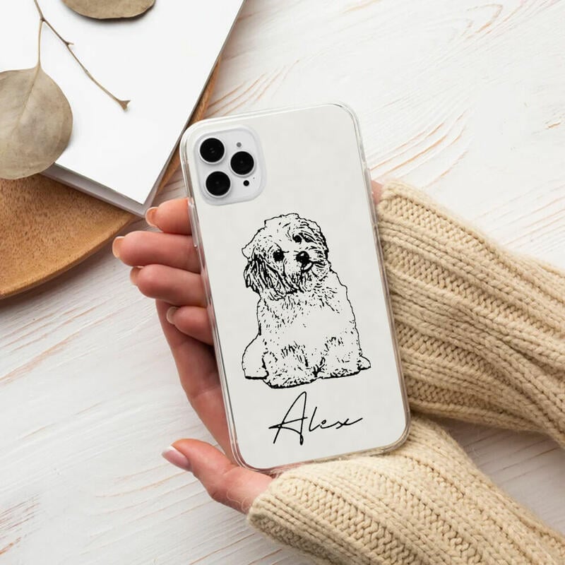 Funda para teléfono móvil personalizada con foto de boceto de mascota personalizada, regalo cálido para amigos