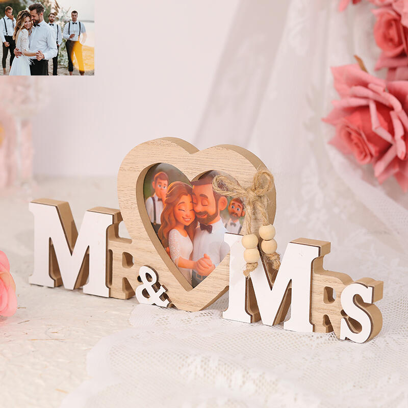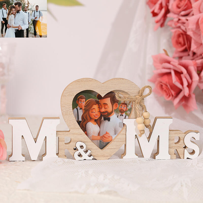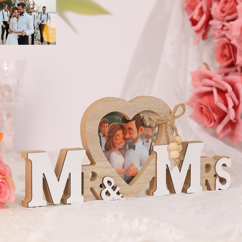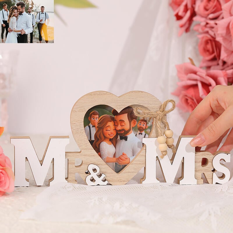 Marco de fotos personalizado con dibujos animados de Mr&Mrs para regalo de boda
