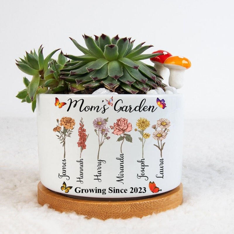 Maceta con nombre personalizado y flores personalizadas maravillosas para mamá