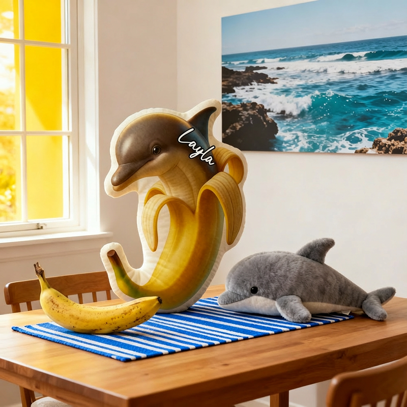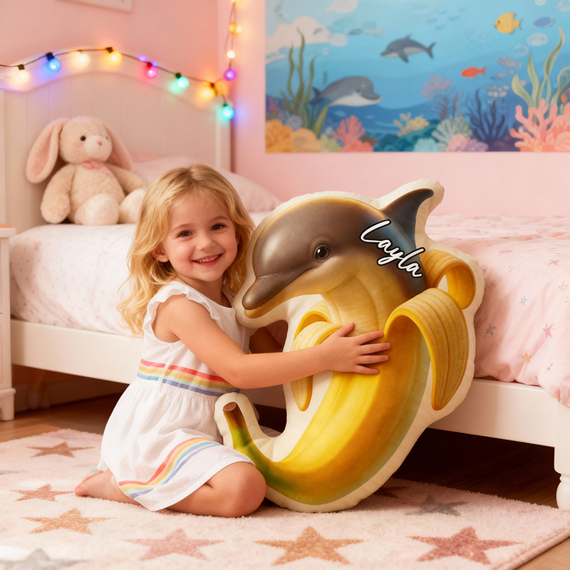 Almohada con nombre personalizada y estampado de delfines, un regalo encantador para niños.