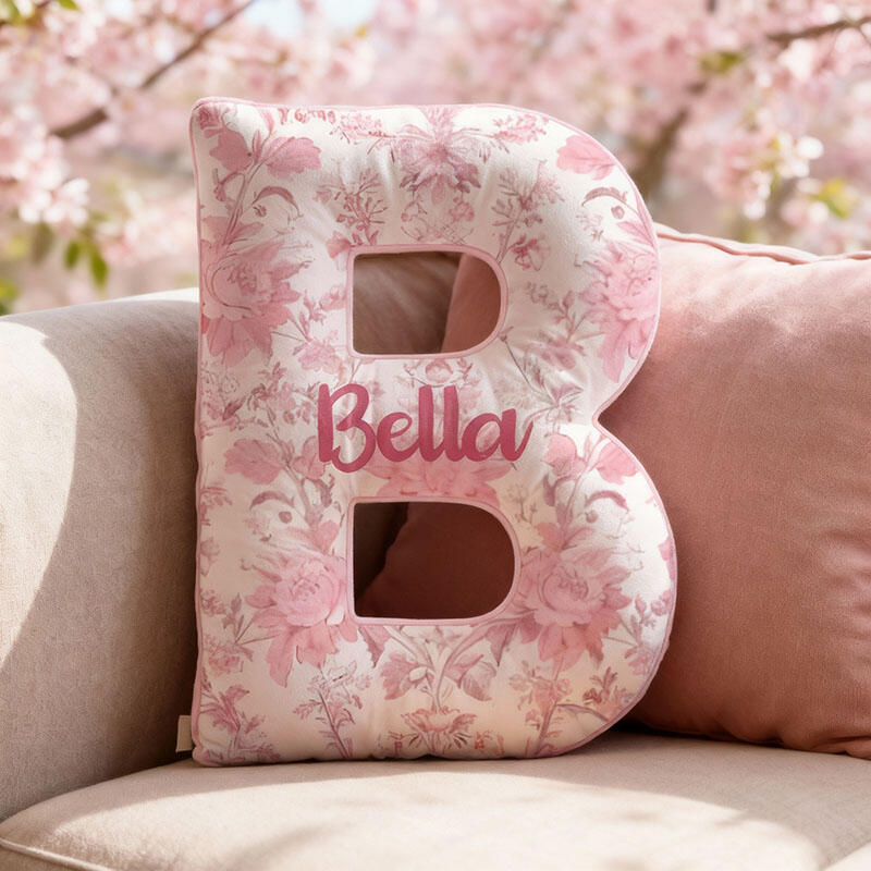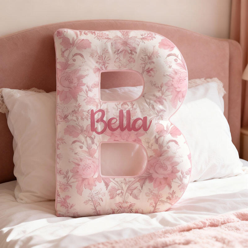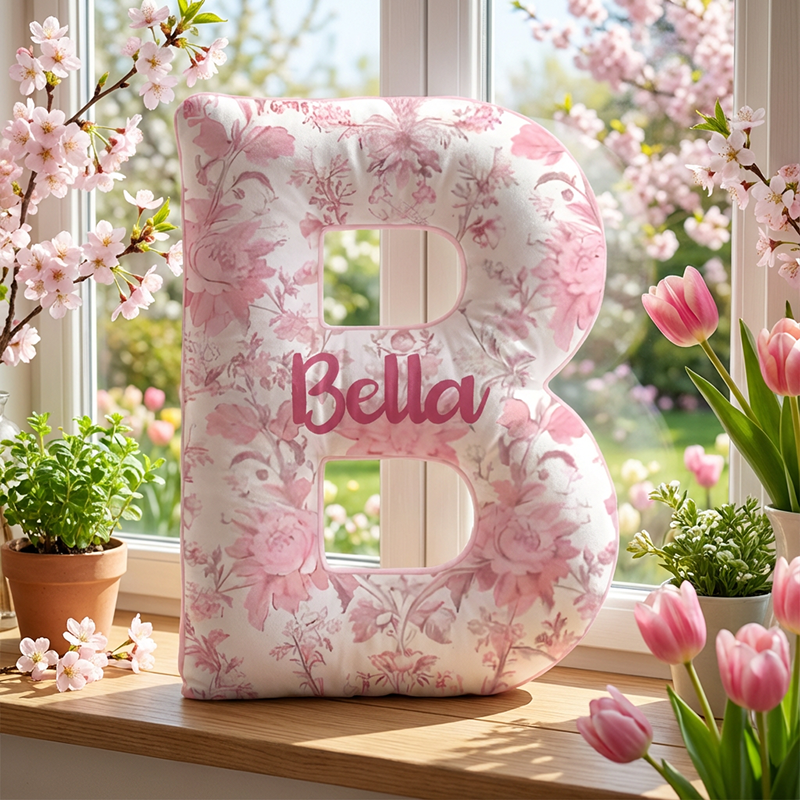 Almohada floral rosa con nombre personalizado, regalo maravilloso para hija