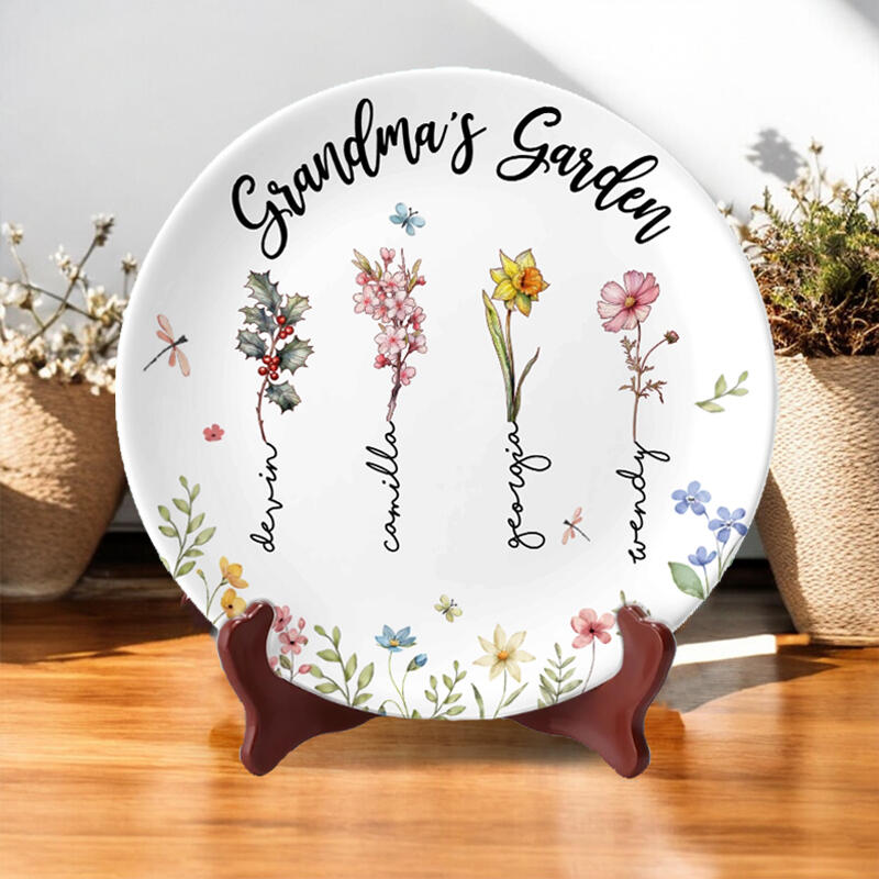 Placa de nombre personalizada con flor de nacimiento personalizada. Regalo único para el Día de la Madre.