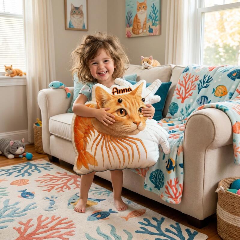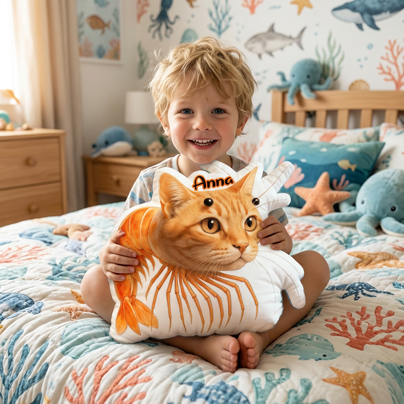 Almohada de peluche con nombre personalizado y diseño en forma de langosta, regalo mágico para niños.