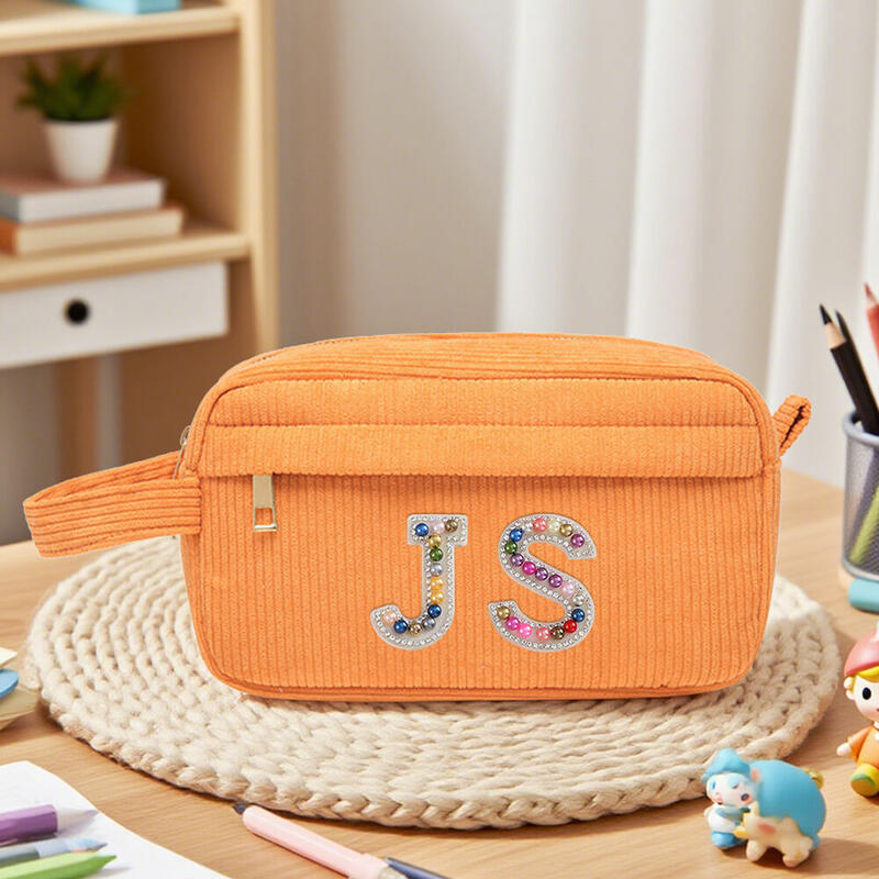 Estuche para lápices personalizado, con parche de tela y letras de perla, regalo de cumpleaños para niñas