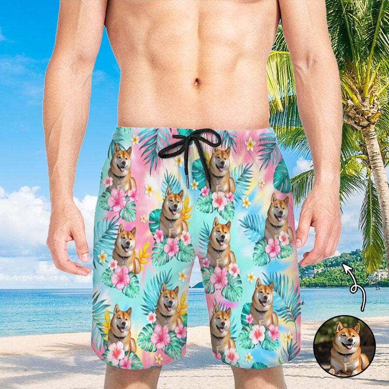Shorts de playa para hombre con foto personalizada y fondo colorido, un magnífico regalo para tu novio.