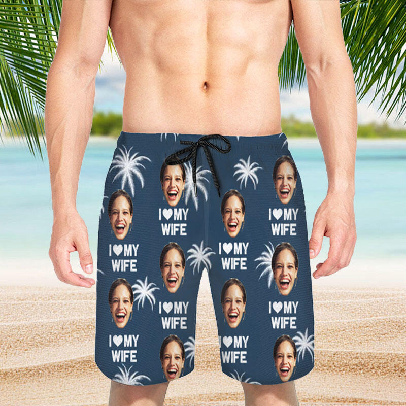 Shorts de playa personalizados con estampado de árbol para hombre. Un regalo precioso para tu esposo.