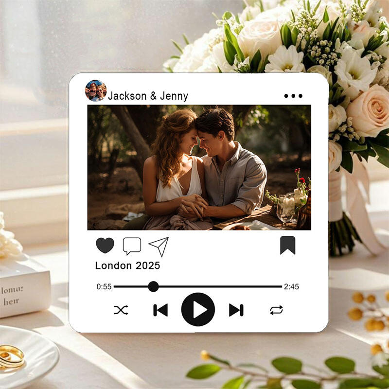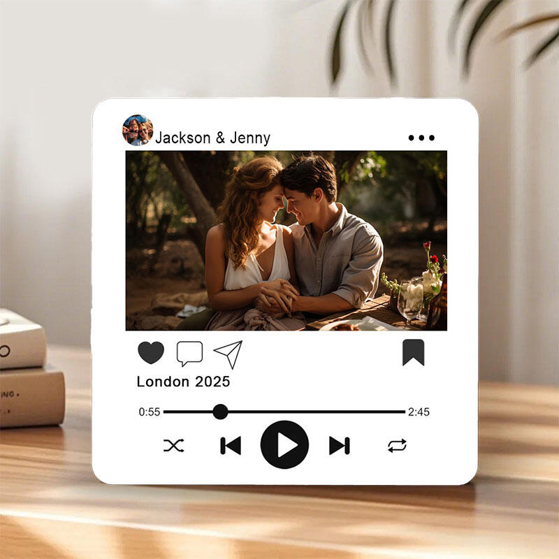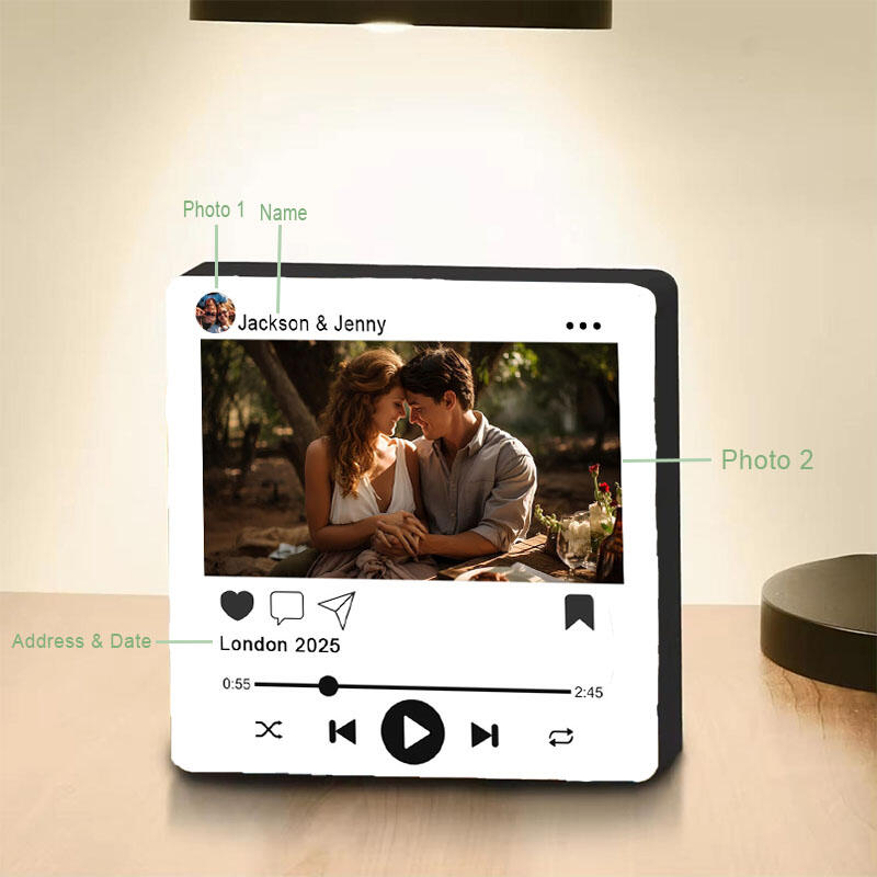 Imán para nevera con imagen musical personalizada con nombre y ciudad personalizados. Regalo sencillo para parejas