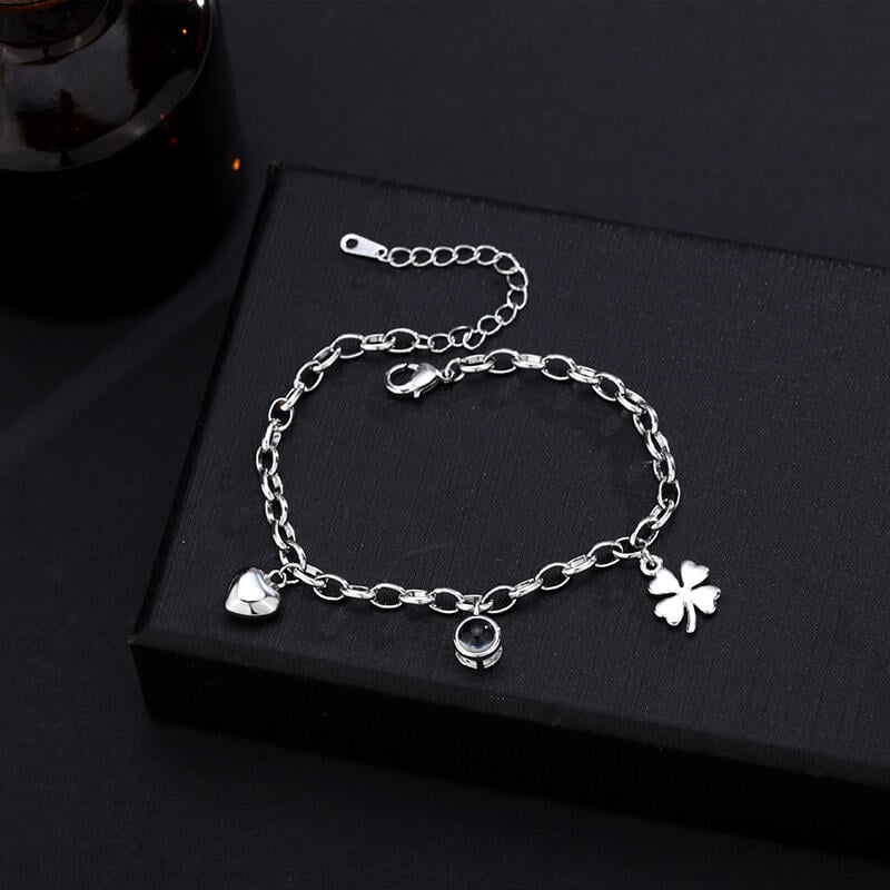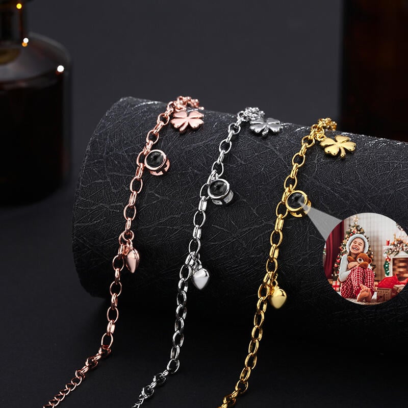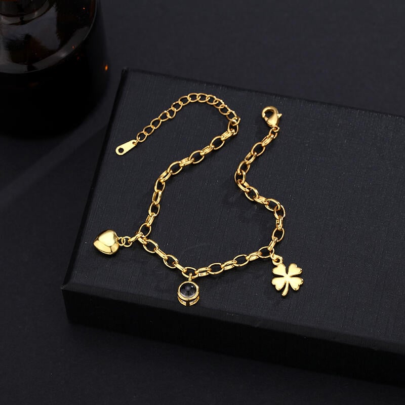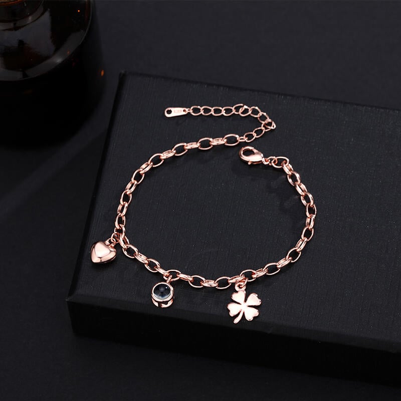 Pulsera de proyección personalizada con colgante redondo y accesorios de trébol de cuatro hojas para niñas