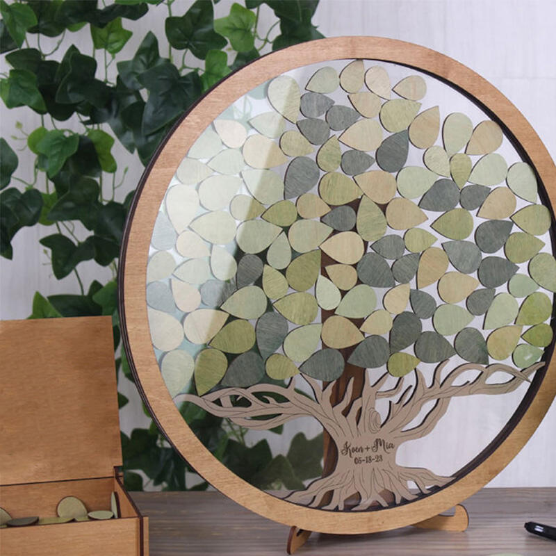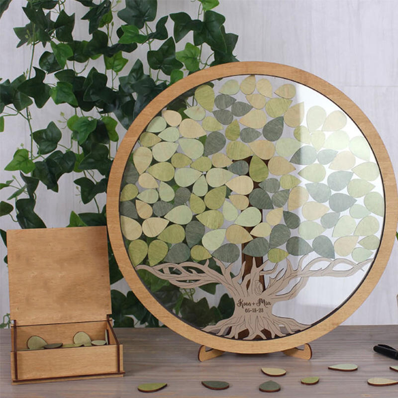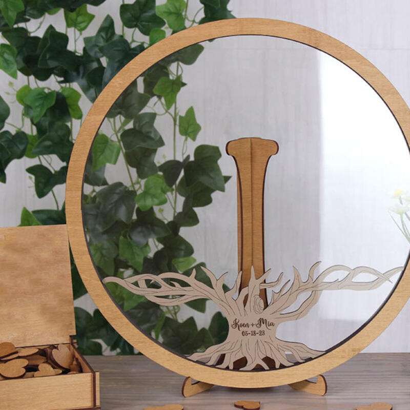 Libro de Invitados de Boda de Madera Redondo Personalizado Regalos de Boda
