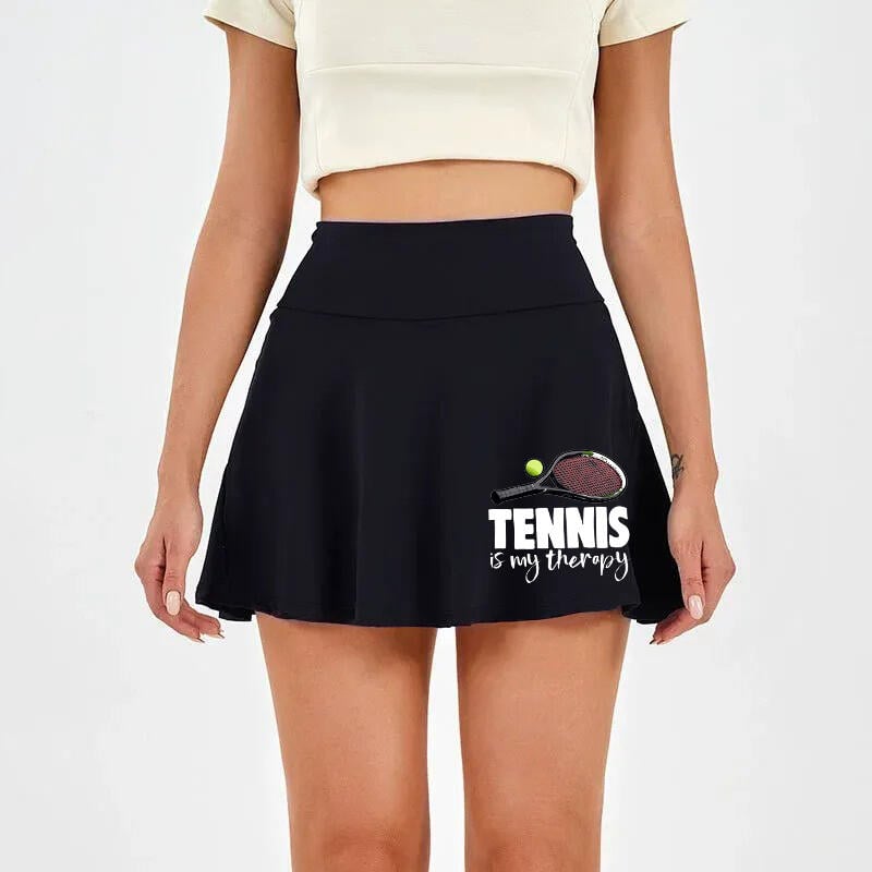 Falda deportiva personalizada con diseño de patrón "Tennis Is My Therapy", regalo creativo para amantes del tenis.