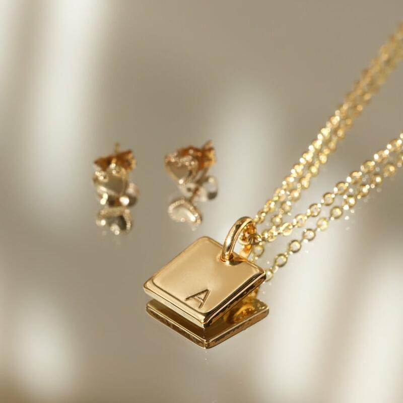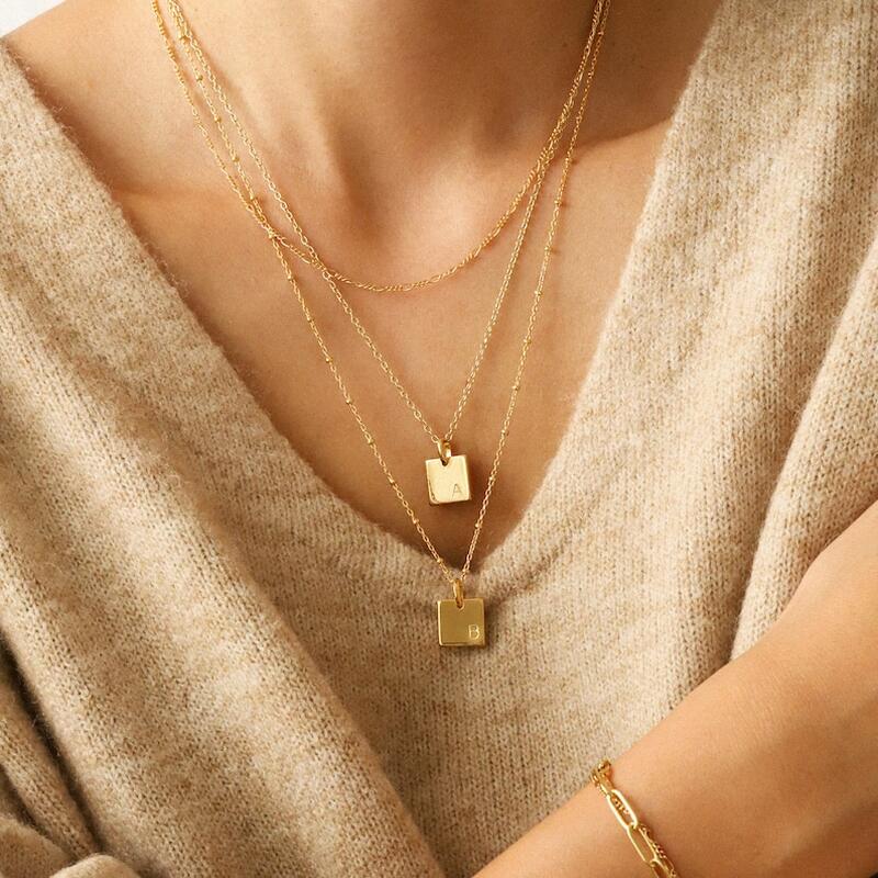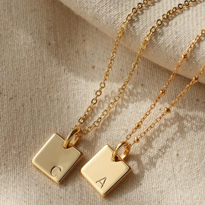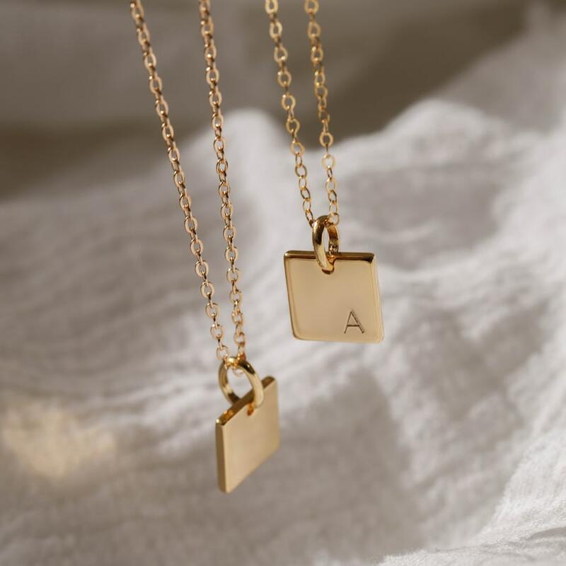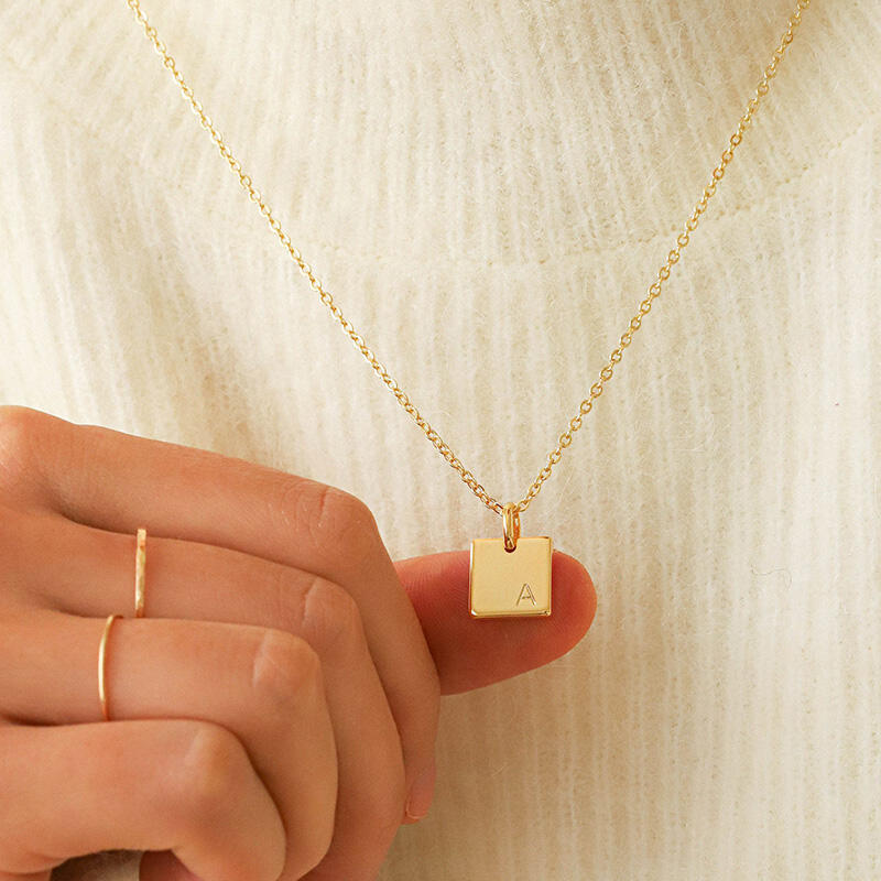 Collar con letras cuadradas personalizado, regalo de Navidad sencillo