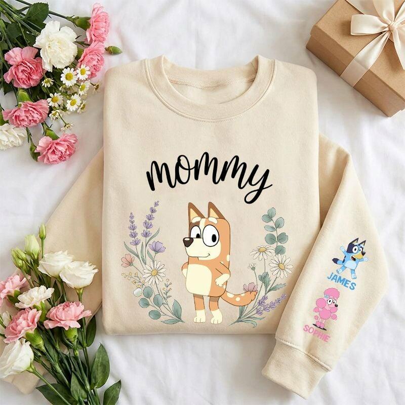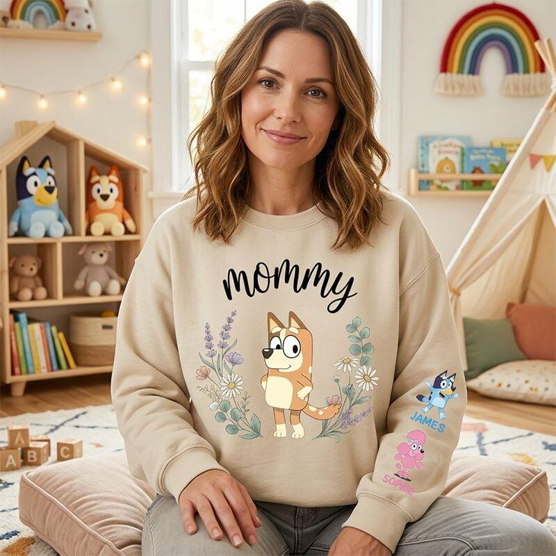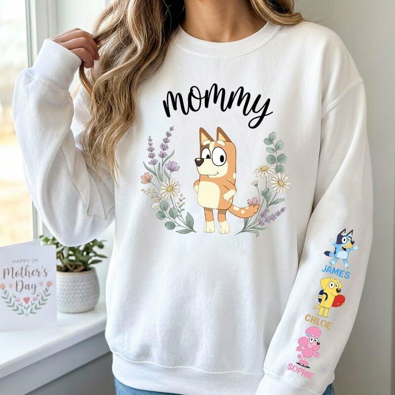 Sudadera personalizada con una mamá perrita de dibujos animados y un estampado opcional de los hijos un regalo para el Día de la Madre
