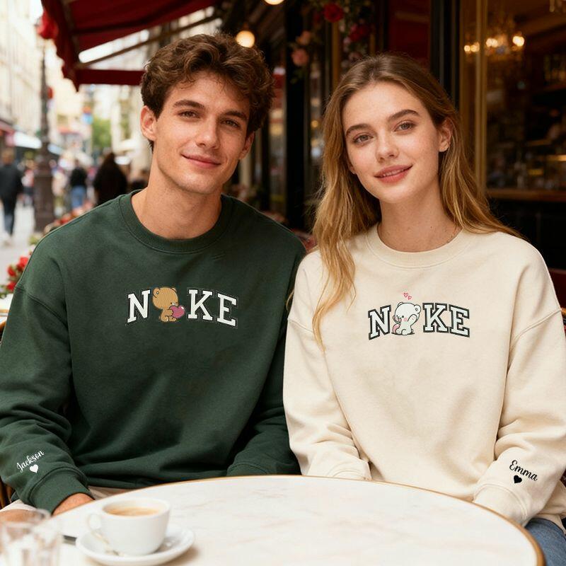 Sudadera personalizada bordada con un oso amoroso de pareja y regalo mono para parejas