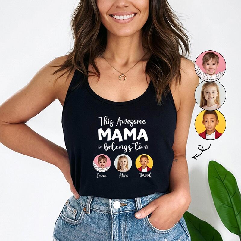 Camiseta sin mangas personalizada "Esta increíble mamá pertenece a" Foto personalizada para niños Regalo perfecto para el Día de la Madre